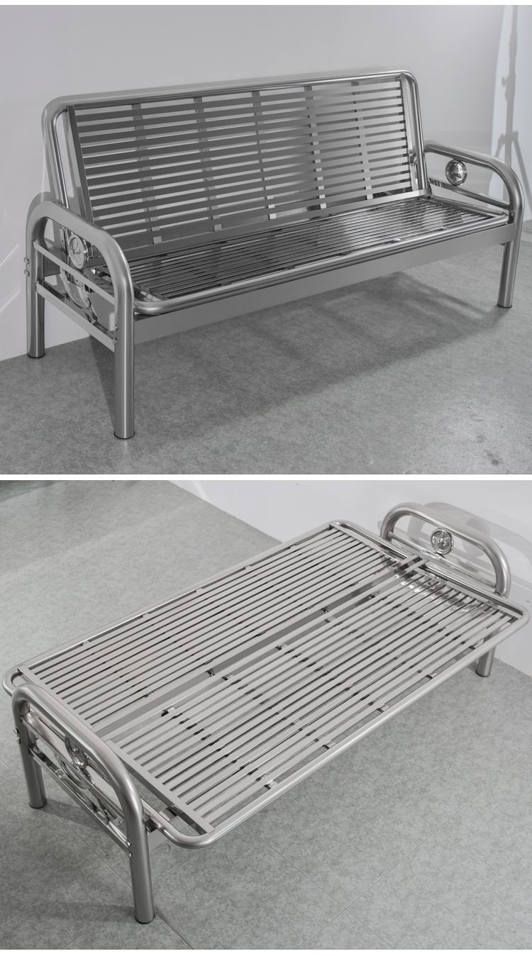 304 ステンレス鋼ソファベッド兼用プッシュプルオフィス折りたたみ長椅子中庭リビングルーム 3 または 4 角形脚