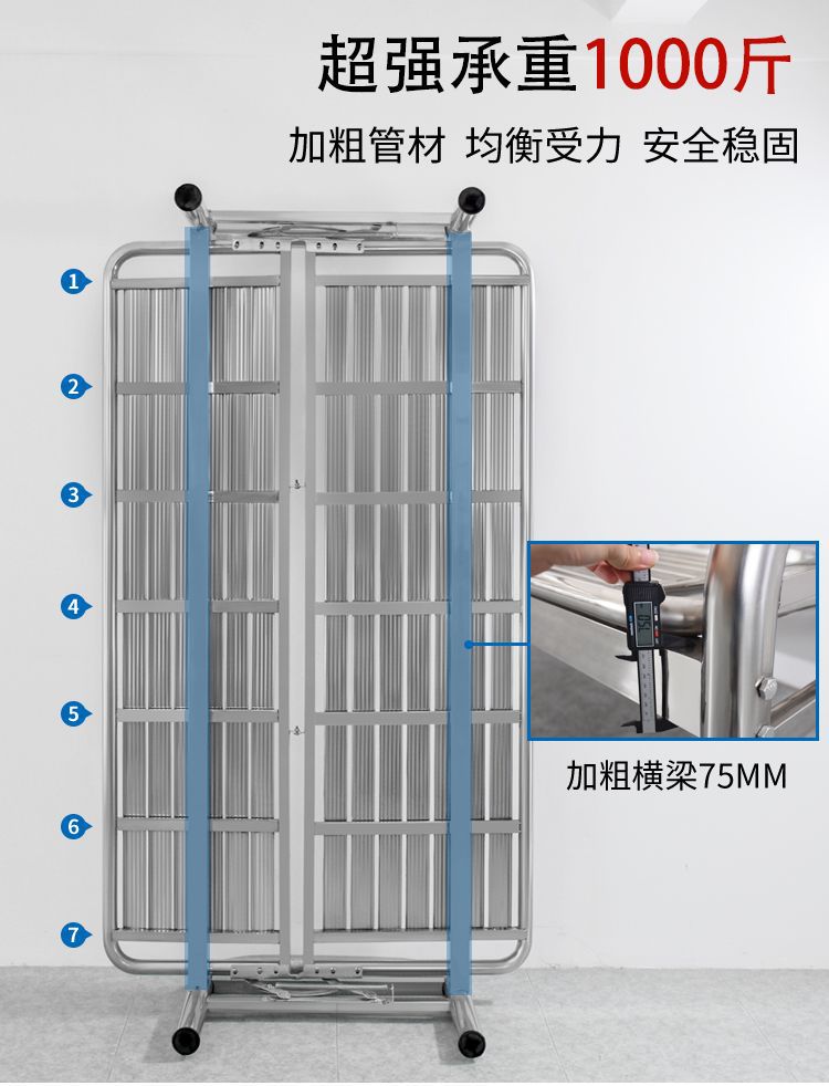 極厚304ステンレス折りたたみベッド、強化、シンプルな暗号化シングルベッド、ポータブル、ホームランチと昼寝用