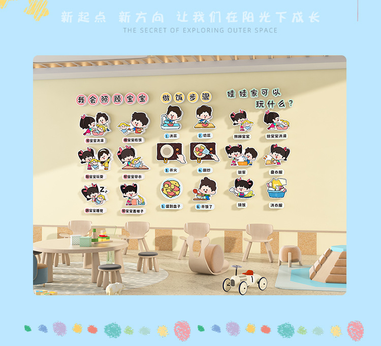 幼稚園の少人数クラスの教室の壁の装飾人形の家リビングエリア調理ステップ環境創造テーマ完成した発泡ボード