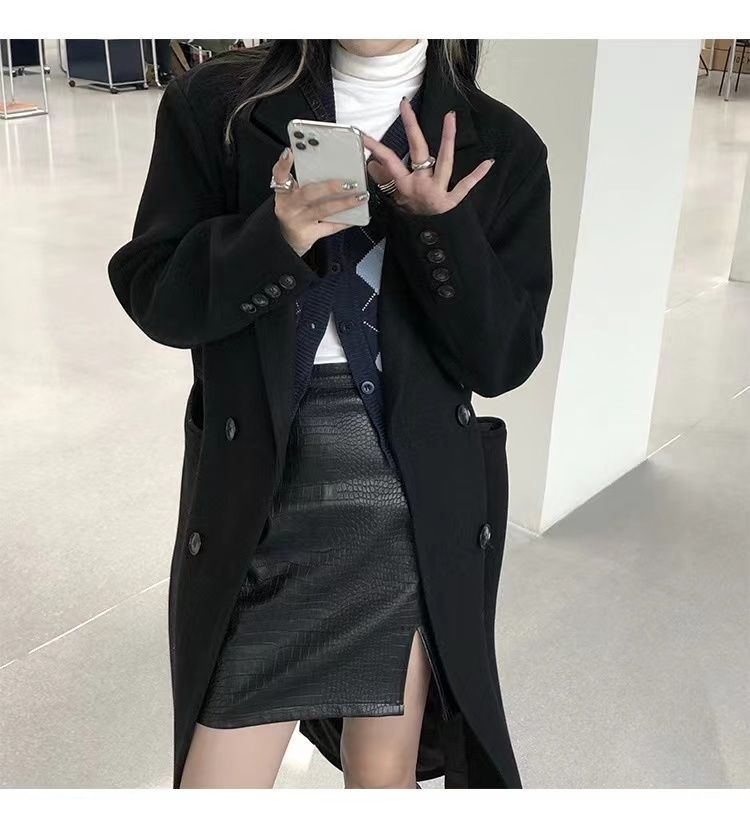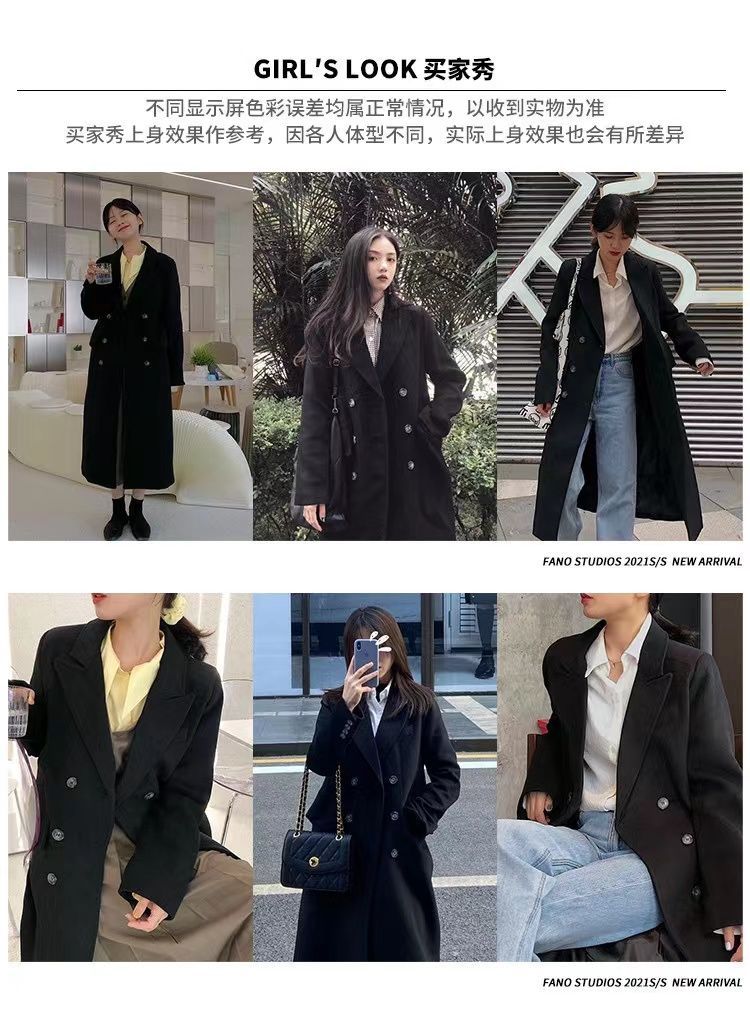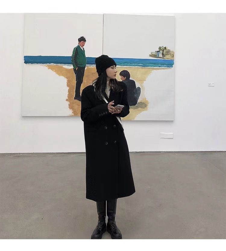 黒の小柄なウールコート女性のミドル丈 2025 秋冬新韓国スタイルのハイエンドカジュアルウールコート