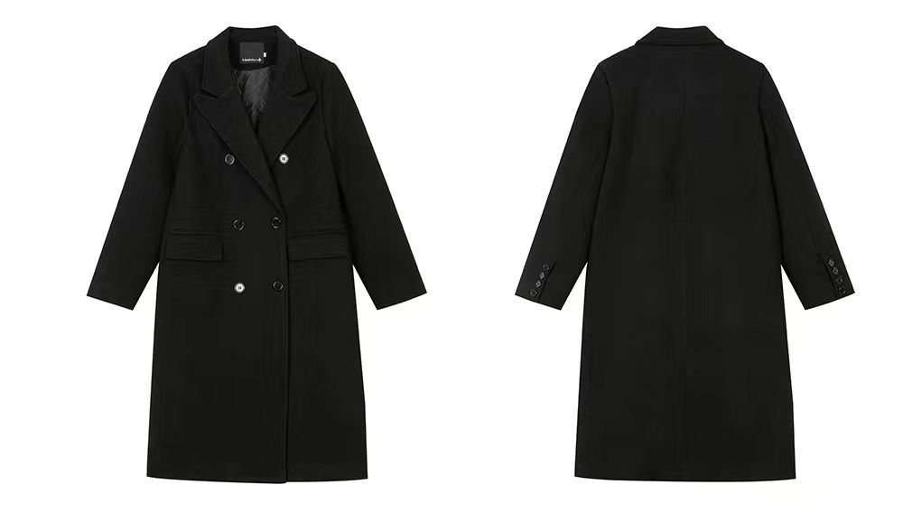 女性のためのシンプルな黒のウールコート 2025 秋と冬の新しいハイエンド韓国ヘボンスタイルウールコートトレンディ