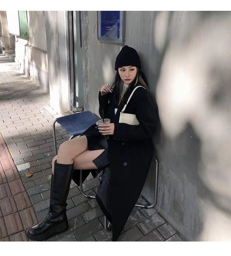 女性のためのハイエンドカジュアル黒ウールコート 2025 秋と冬の新しい韓国スタイルの小さな厚いウールコートトレンディ