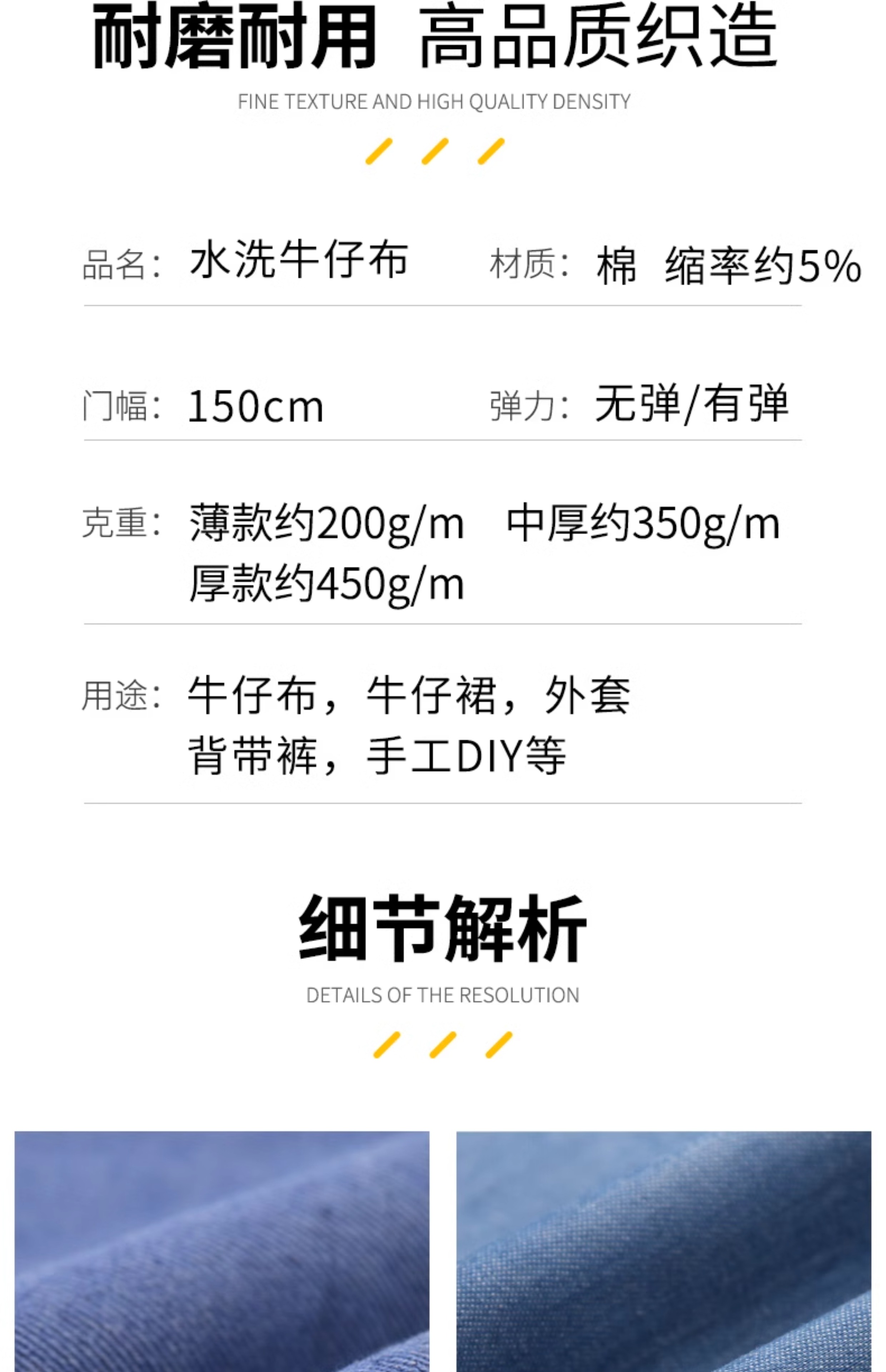 洗浄綿デニム生地厚手のコートパンツシャツスカート服夏 diy 薄い生地