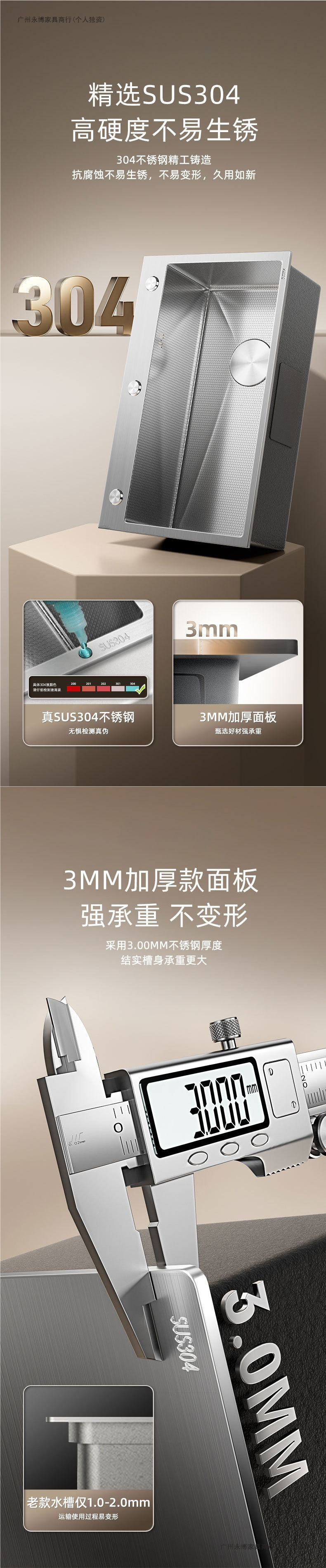 クジラの特厚6mmデジタル水槽304ナノステンレス家庭用キッチン野菜飛雨滝単槽ハチの巣