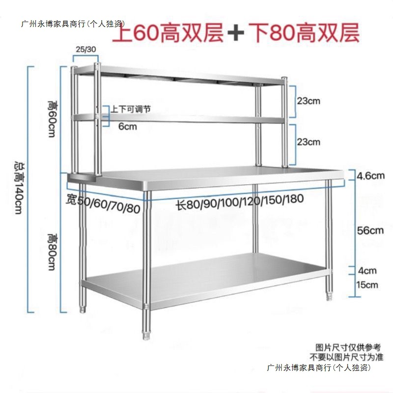 ステンレス鋼二層単層デスクトップ収納ラック単層多層作業台ラックキッチン商業家庭用