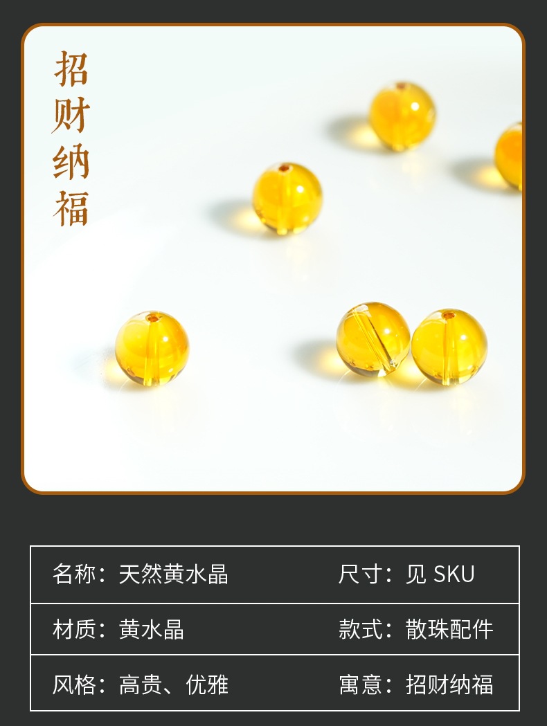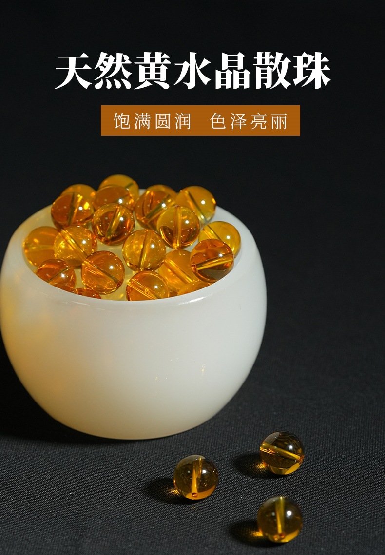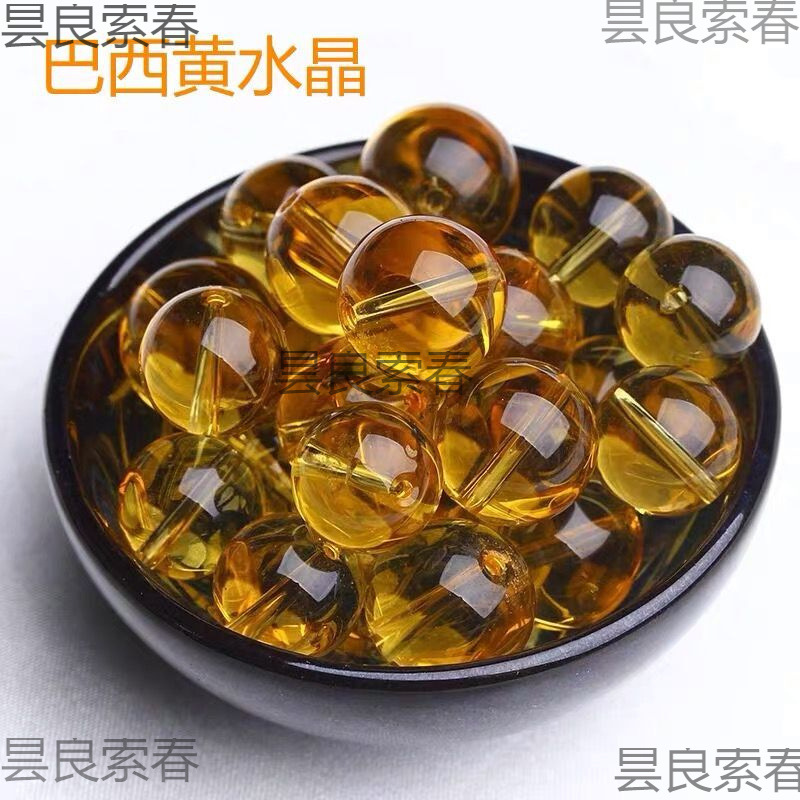 收藏级天然黄水晶散珠珠子巴西全净体单珠单颗手串配珠串珠隔珠