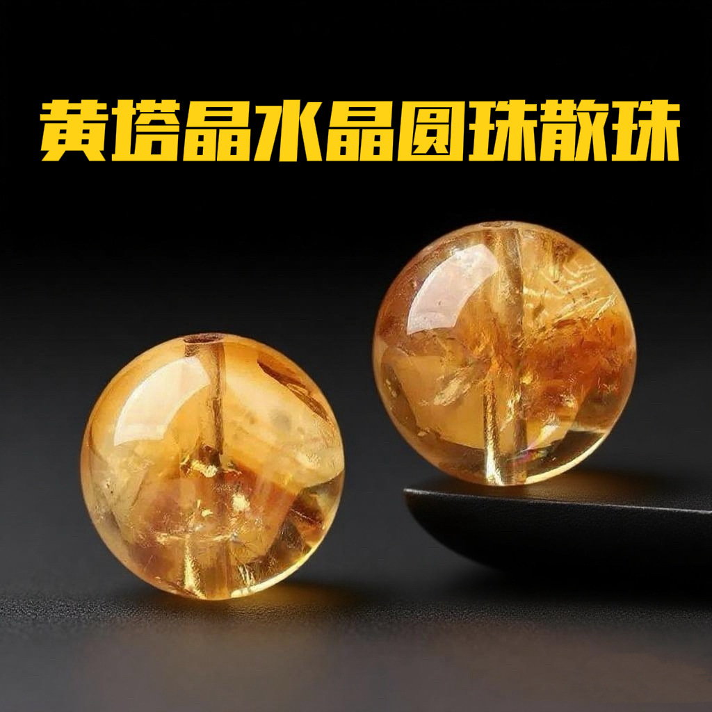 天然黄塔晶水晶散珠暴力黄水晶圆珠单珠DIY串珠招财 水晶厂家批发