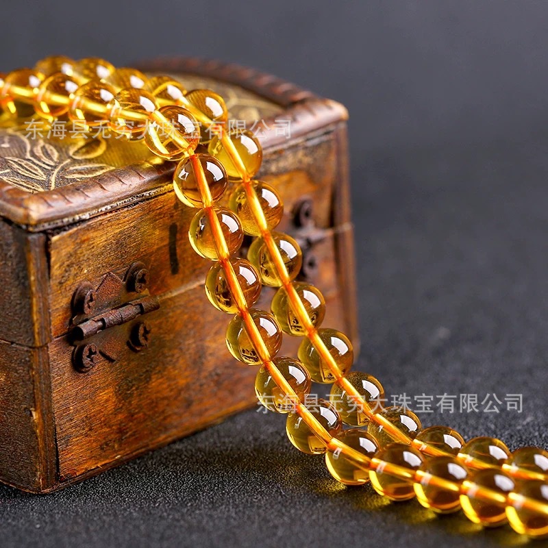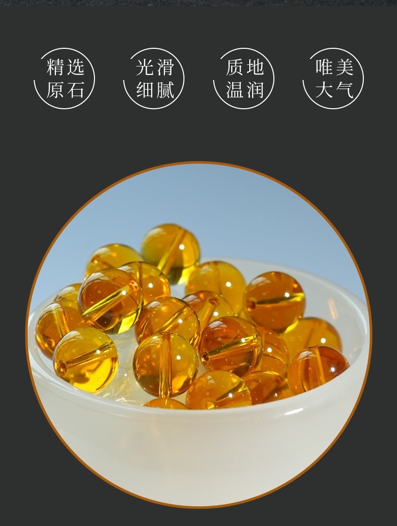 收藏级9A级深橘黄色巴西黄水晶手链单珠散珠批发后男女多宝全净体