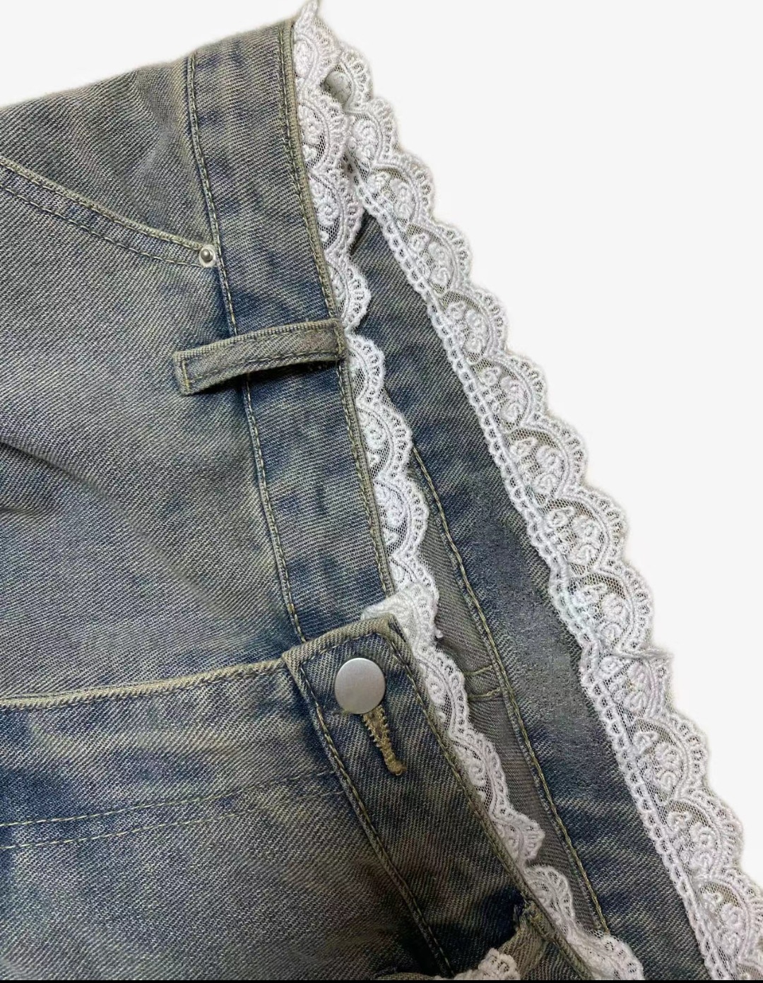 レースデニムワイドレッグパンツ女性のための 2025 春と秋の新しいハイウエスト人気のスリムストレートパンツ