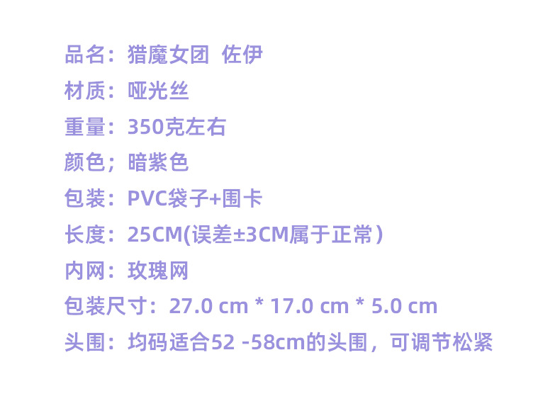 豆蔻 Skpop猎魔女团 cos假发 米拉 佐伊 鲁米造型儿童款COS假发