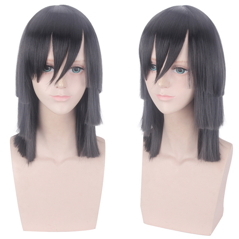 カルダモンのアニメかつら鬼滅の刃伊黒小芭内のキャラクターのスタイルのショートヘアのコスプレかつら