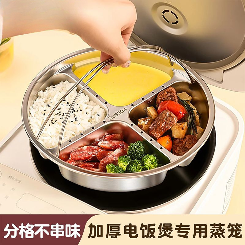 三格蒸盘家用分格电饭煲内蒸笼篦子分隔蒸碗不锈钢电饭锅通用蒸屉