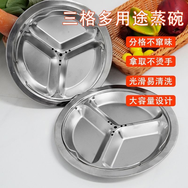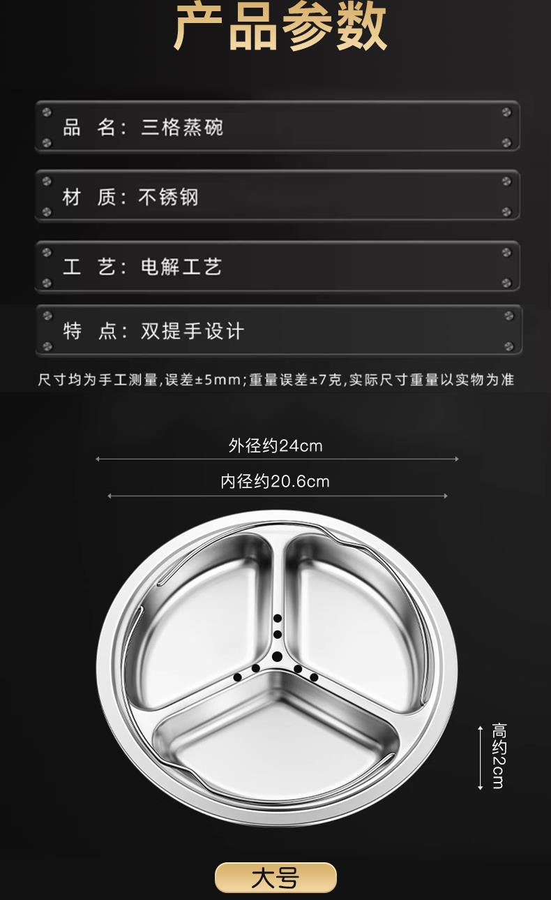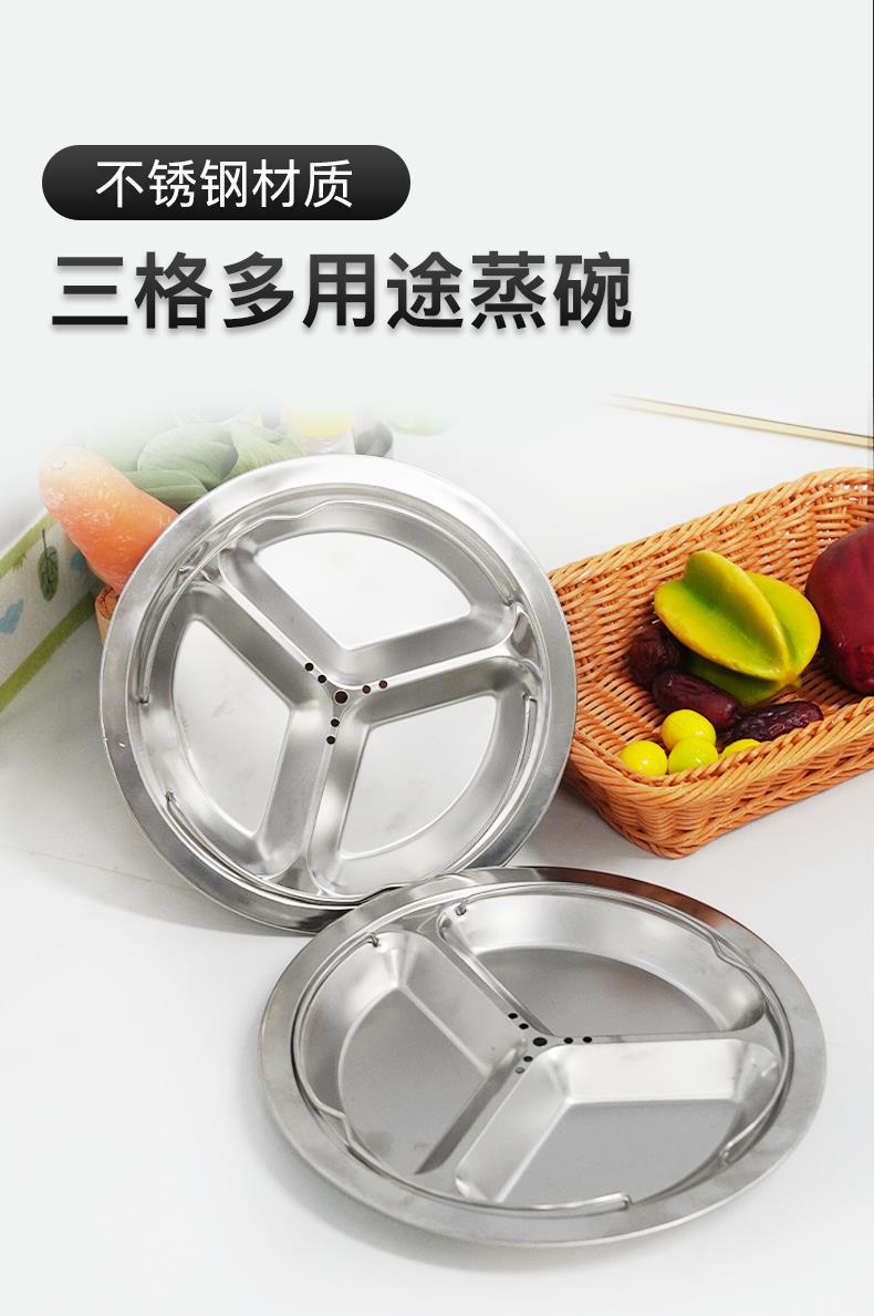 不锈钢三格蒸盘圆形分隔蒸碗蒸饭神器电饭煲蒸格家用韩国厨美餐具