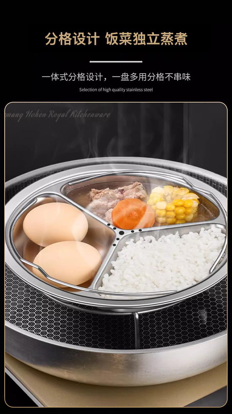 304不锈钢食品级电饭锅分格三格蒸盘米饭神器宝宝辅食蒸笼蒸碗