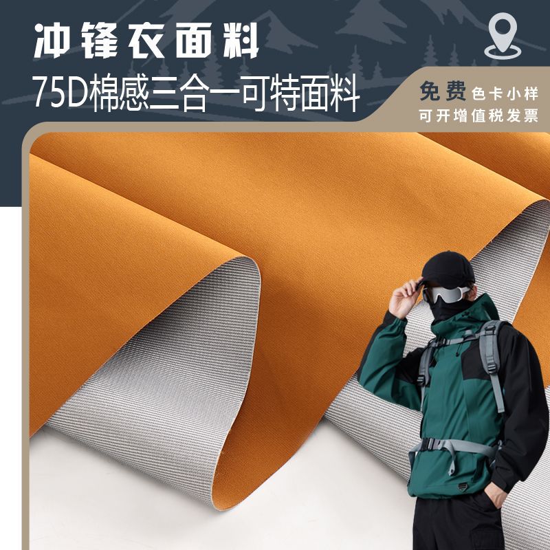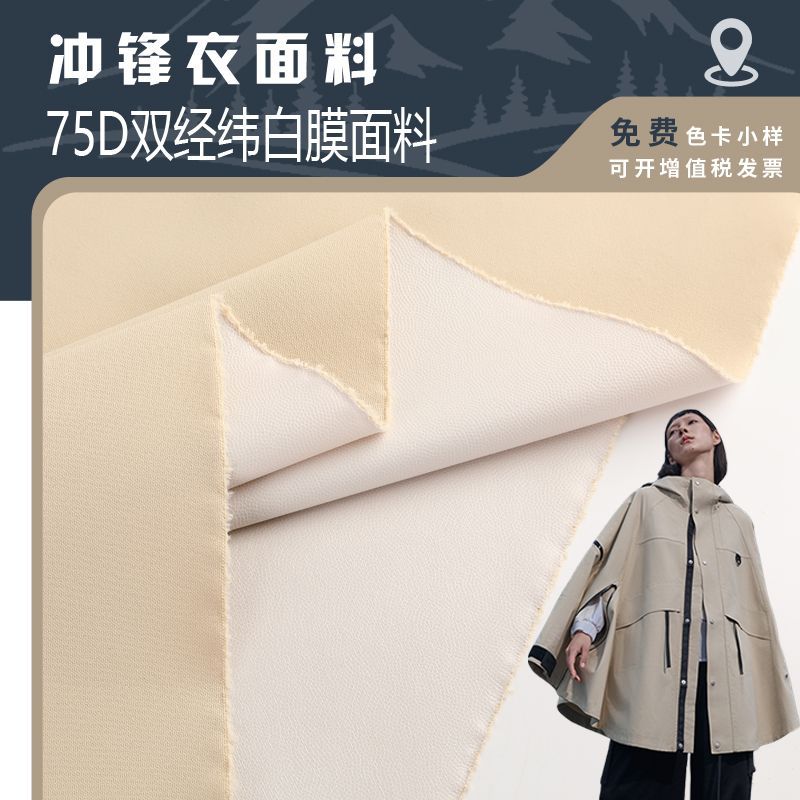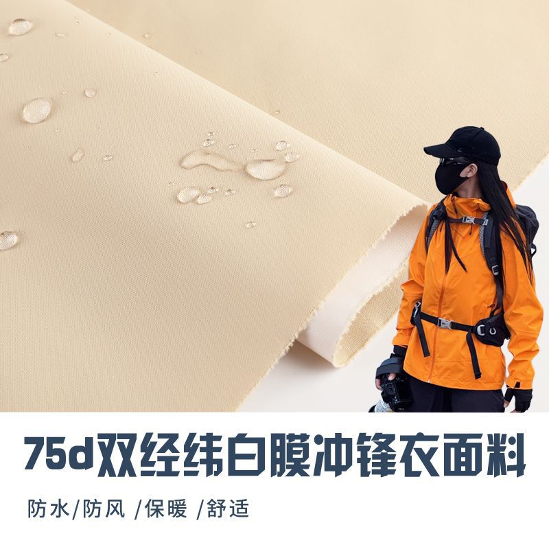 冲锋衣面料 75D双经纬复合白膜防水防风耐磨派克服滑雪服雨披布料