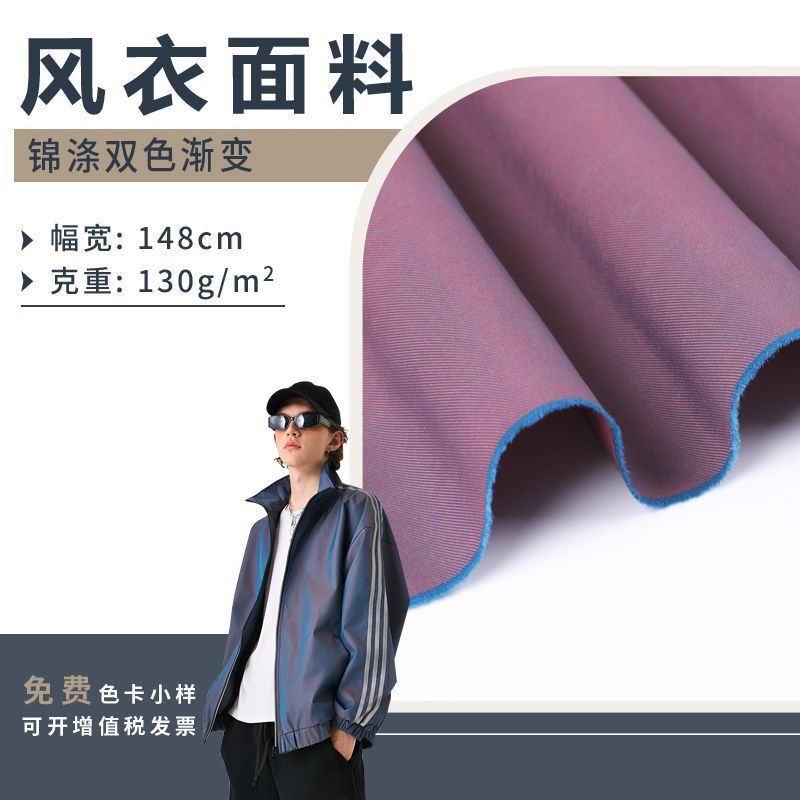 トレンチコート生地75D錦ポリエステル糸二色変色龍綾表面拒水工装ジャケット綿服バッグ生地