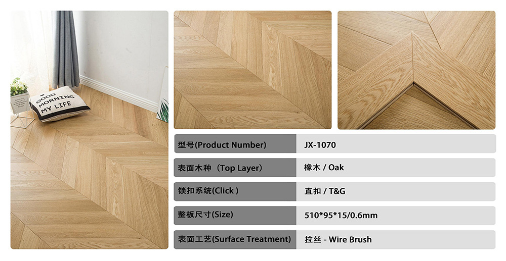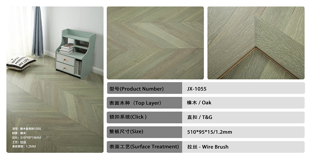 多層無垢材フローリング ヨーロピアンオーク ヘリンボーンフローリング JXシリーズ リビングルーム ダイニングルーム ベッドルーム シンプル クリーム系フローリング