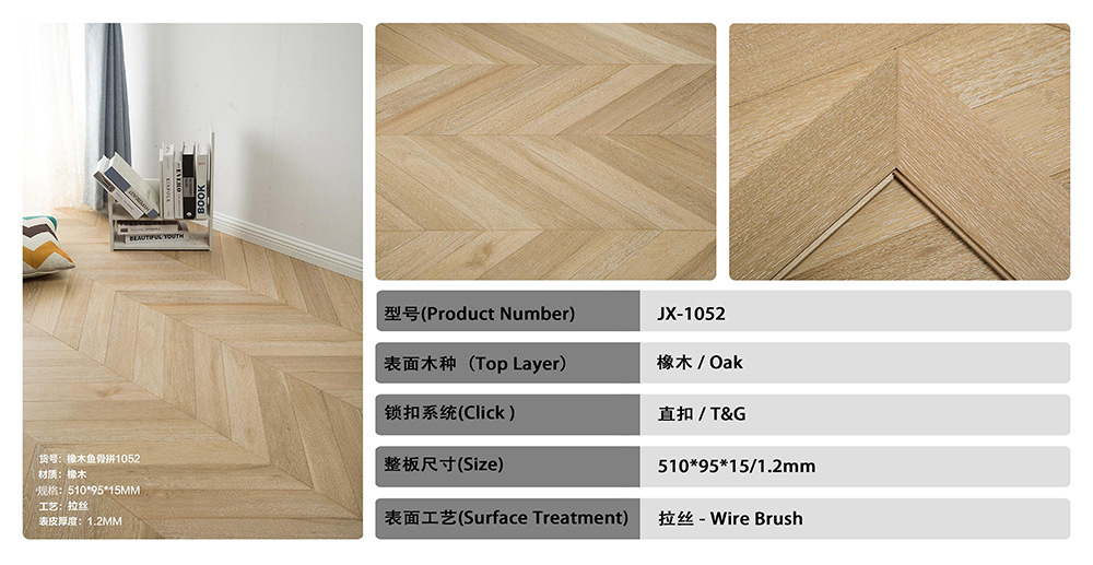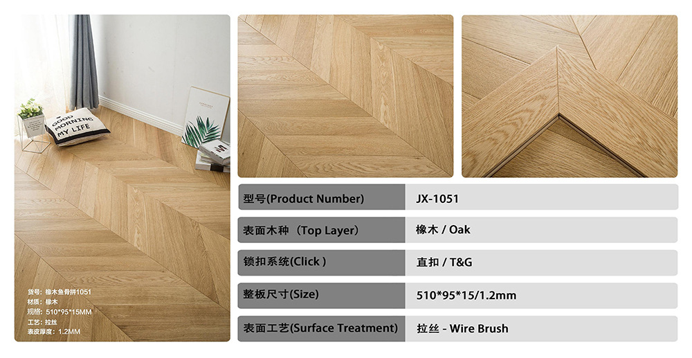多層無垢材複合フローリング オーク魚骨模様フローリング JXシリーズ 客室・ダイニング・寝室用 シンプルクリーム系フローリング
