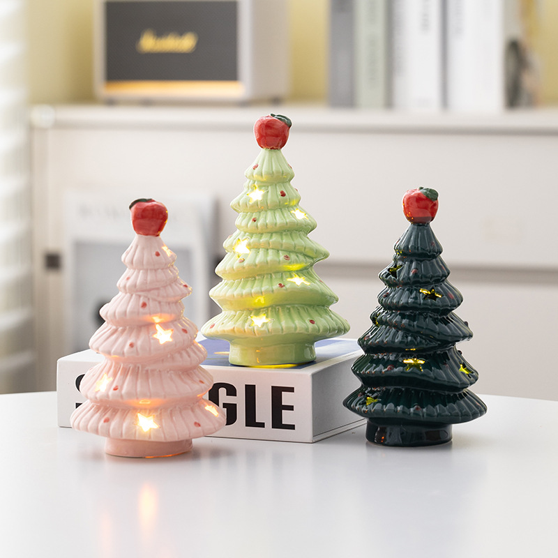 ins风苹果圣诞树星星小夜灯圣诞节装饰拍照道具桌面陶瓷摆件礼物