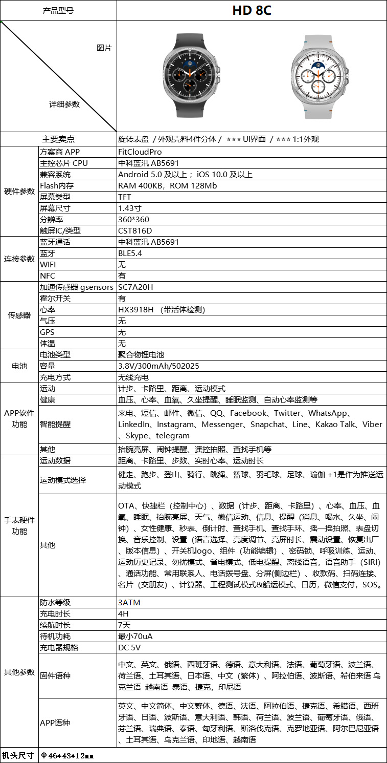 HD8C智能手表跨境新款旋转表盘运动智能语音防水通话hd8c智能手表