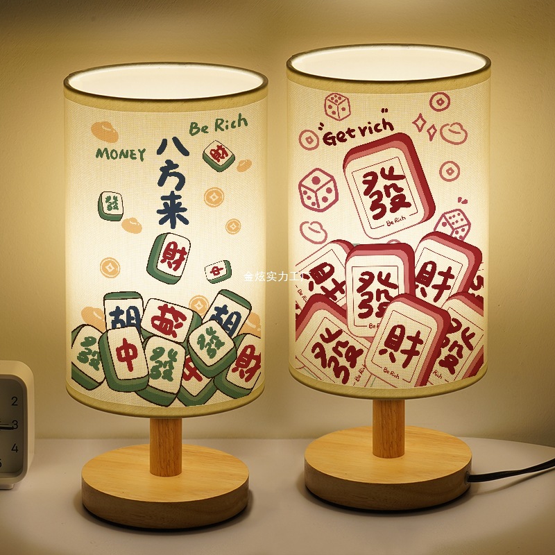 オリジナルクリエイティブデザイン小型テーブルランプベッドサイドランプ感覚麻雀フォーチュンパーソナライズされた楽しい無垢材ベッドサイドランプナイトライト