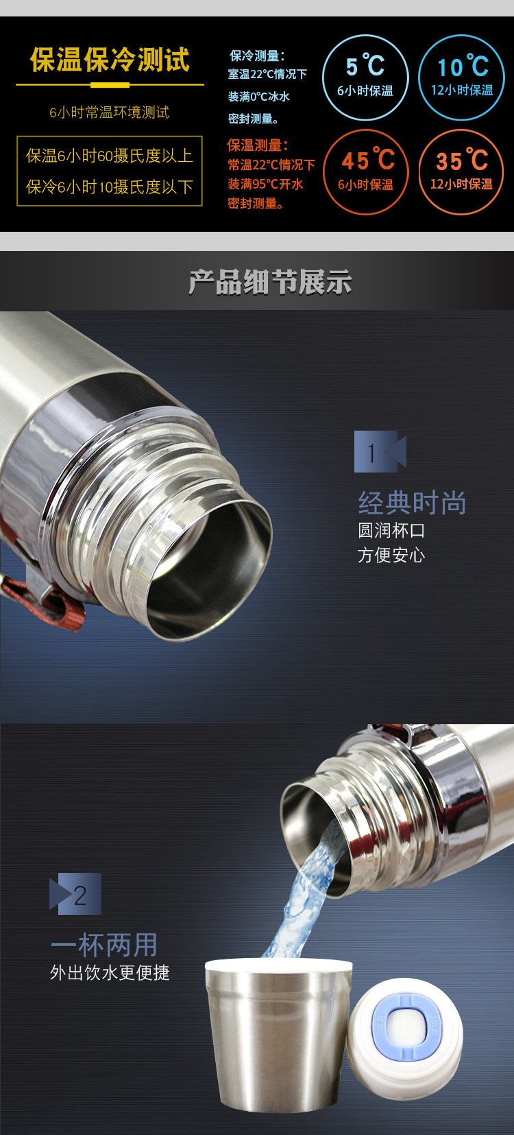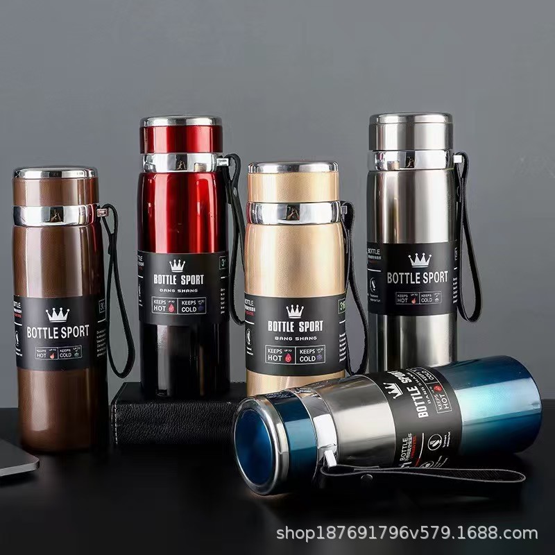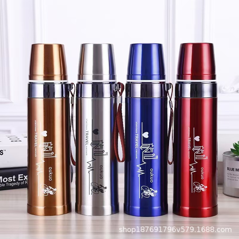 跨境不锈钢304保温杯商务大容量户外便携吊带运动太阳壶刻印logo