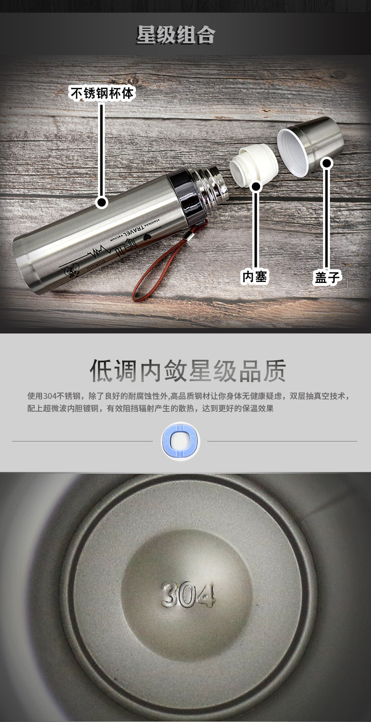 304ステンレス保温カップ750ml鉄甲弾頭真空保温カップ大容量携帯屋外コップ水