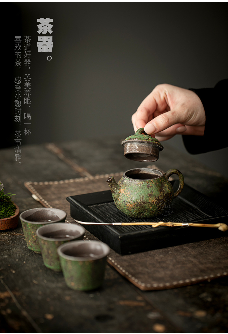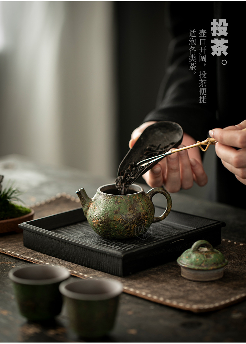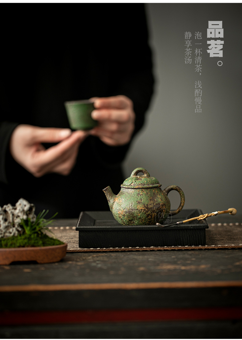 岩绘时光禅意壶中式复古泡茶壶家用功夫茶具陶瓷茶壶防烫手侧把壶