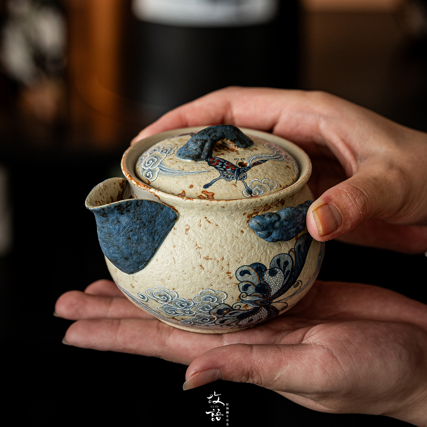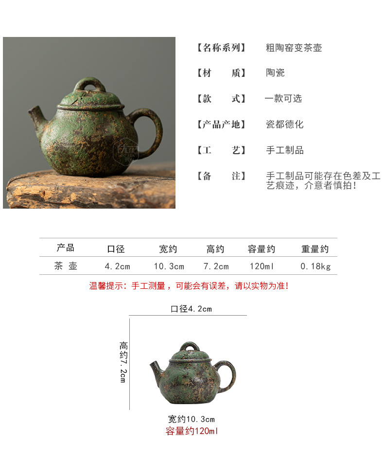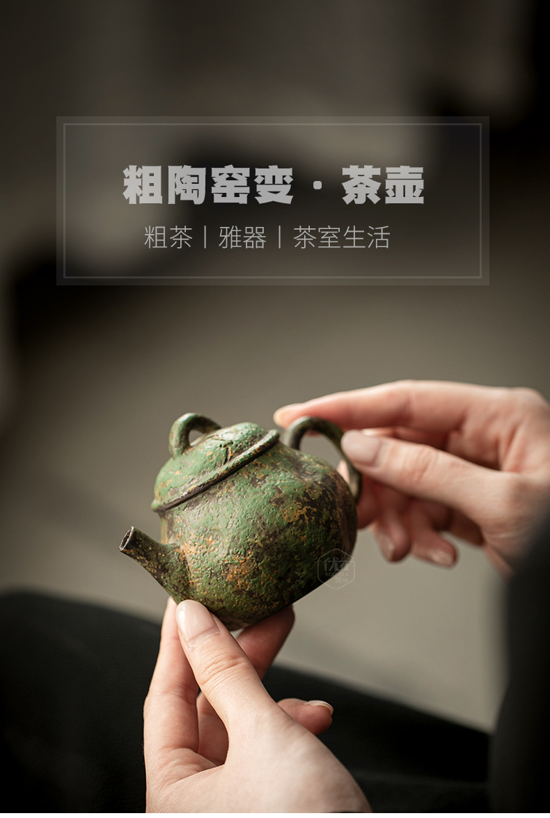 故语青花火石红窑变手抓壶复古茶壶家用侘寂风陶瓷泡茶壶功夫茶具