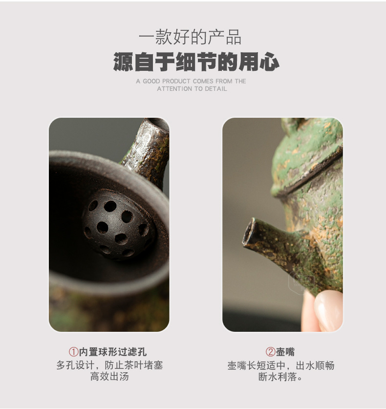 复古中式粗陶老岩泥泡茶壶家用带过滤茶水分离单壶手抓壶功夫茶具