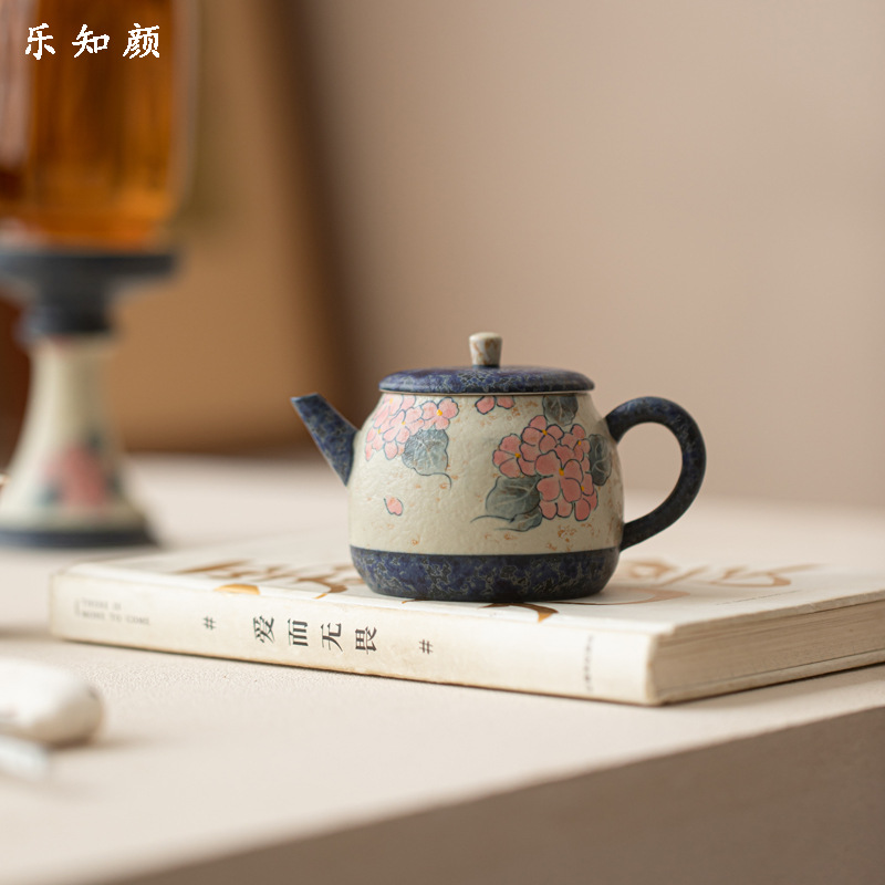 创意陶瓷花瓣壶草木灰茶壶功夫茶具中式家用复古小品壶带过滤单壶