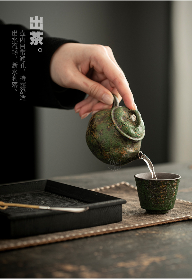 侘寂风粗陶小茶壶高档个人专用泡茶壶家用普洱壶带过滤茶水壶单壶
