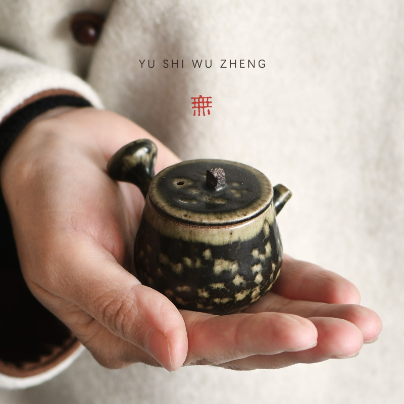 レトロな陶器の提梁壺、小型中国式茶壺、家庭用功夫茶器、レトロな陶器の壺、単体茶壺