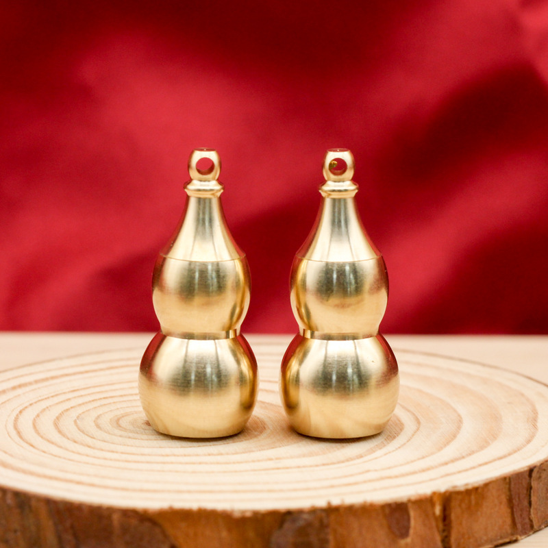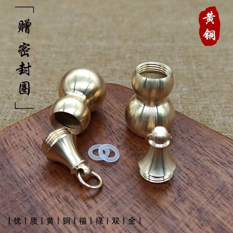 纯黄铜开口空心葫芦钥匙挂件药瓶挂饰速效救心丸药罐随身吊坠