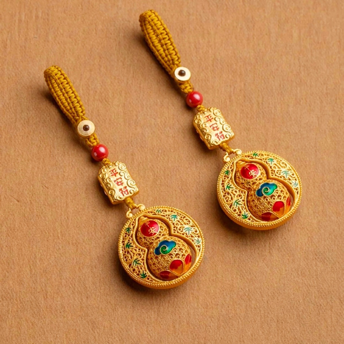 中国風透かし彫りひょうたん型財運平安ペンダント、携帯電話、車のキーチェーン、バッグの飾り、古代の技法によるクリエイティブなギフト