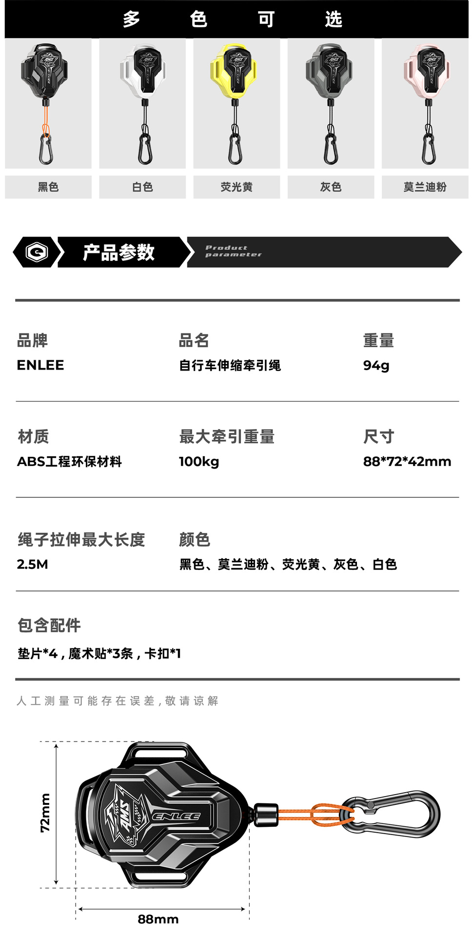 ENLEE 屋外親子自転車牽引ロープは自動的に格納され、サイクリング牽引ロープ伸縮式牽引アクセサリー