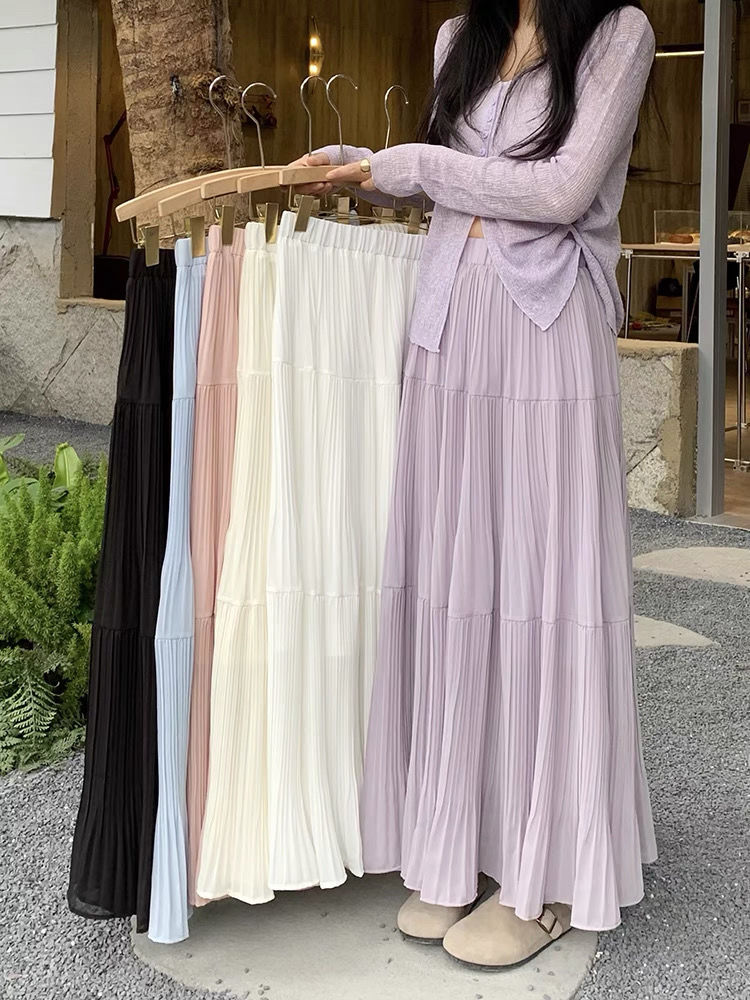 高級感紫半身スカート女性春夏新作a字シフォンロングスカート