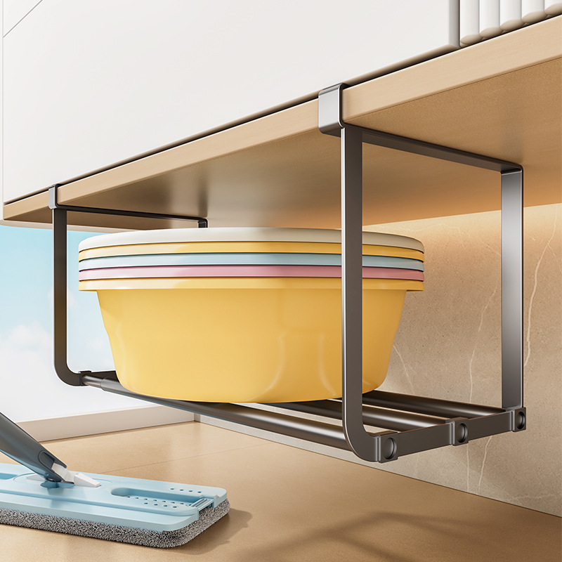 脸盆收纳架卫生间浴室柜下免打孔脸盆架洗漱台下悬挂式洗澡盆子架