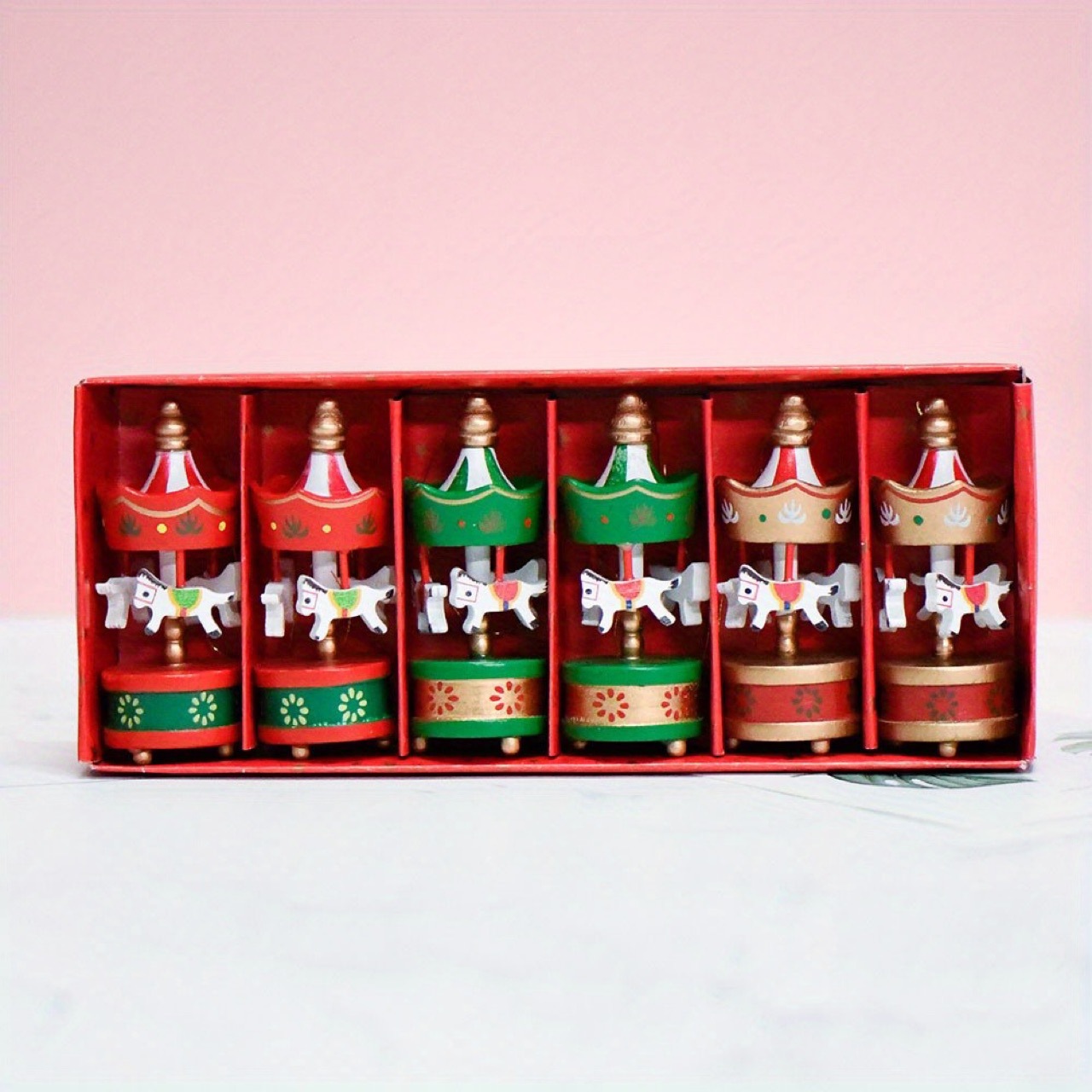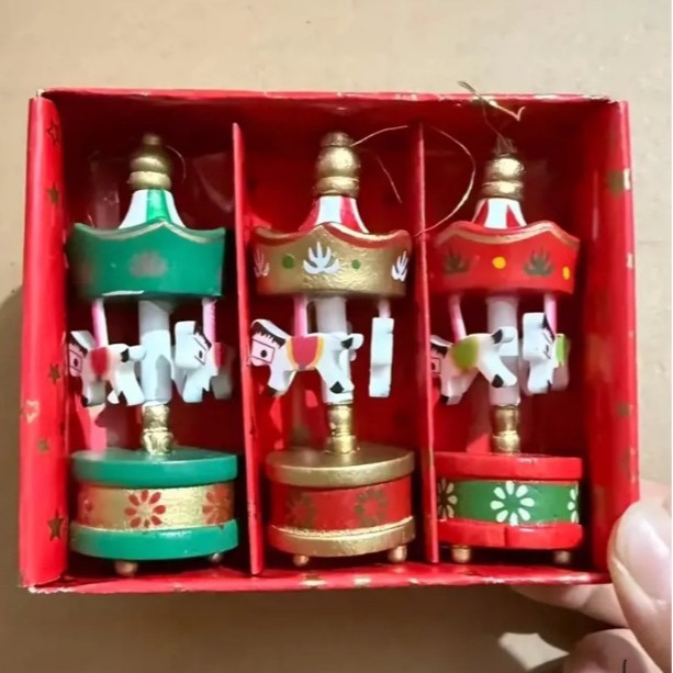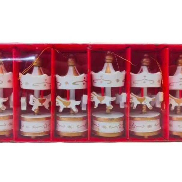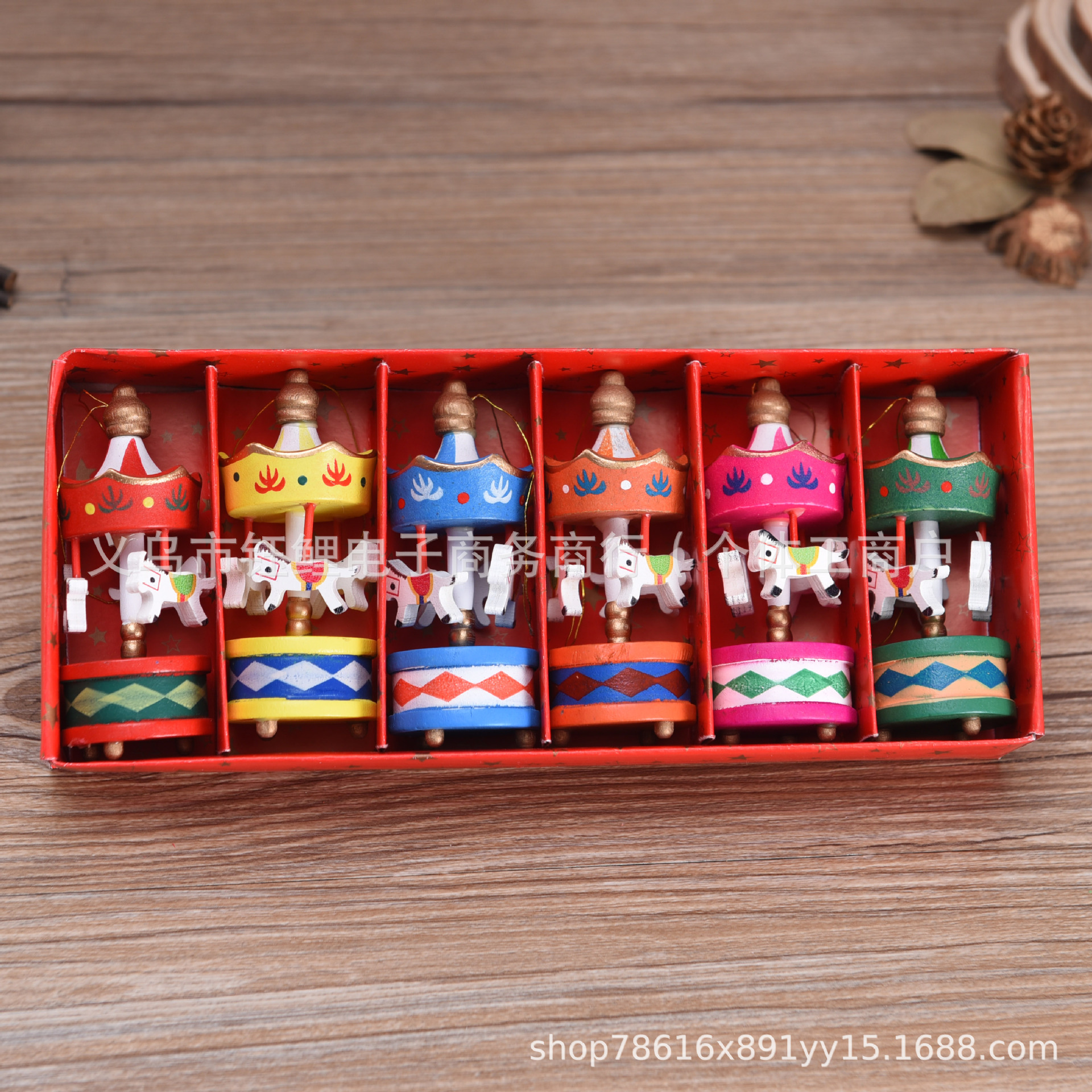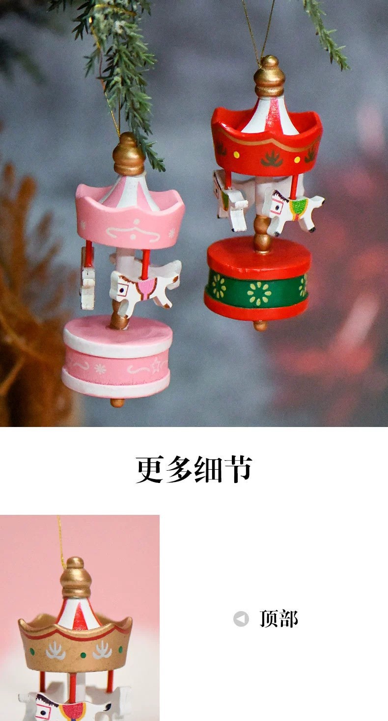 迷你木质6个一盒装旋转木马挂件圣诞节装饰用品圣诞树挂饰家庭装