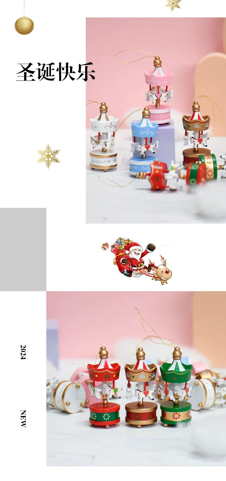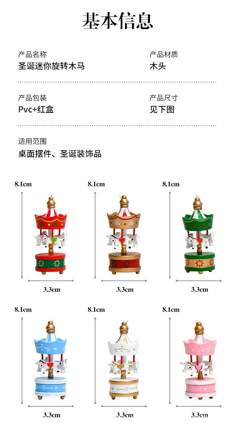 ✅圣诞礼品 圣诞摆件 圣诞装饰品 木制旋转小木马