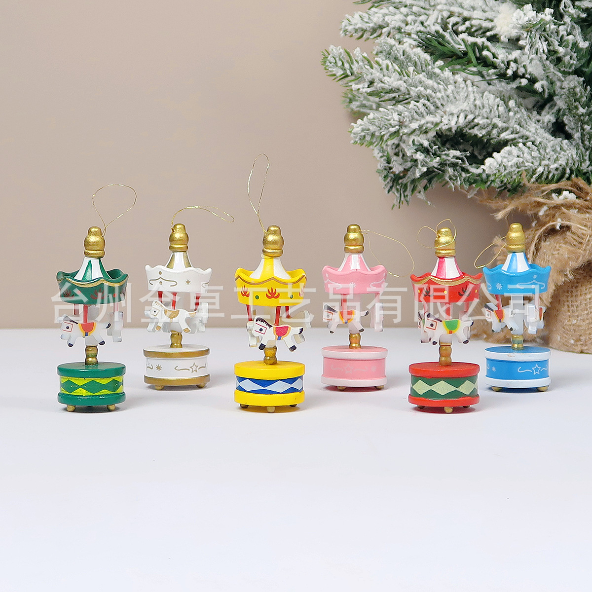 创意礼品小挂件木制彩色凉亭马圣诞纪念品迷你旋转木马家居装饰品