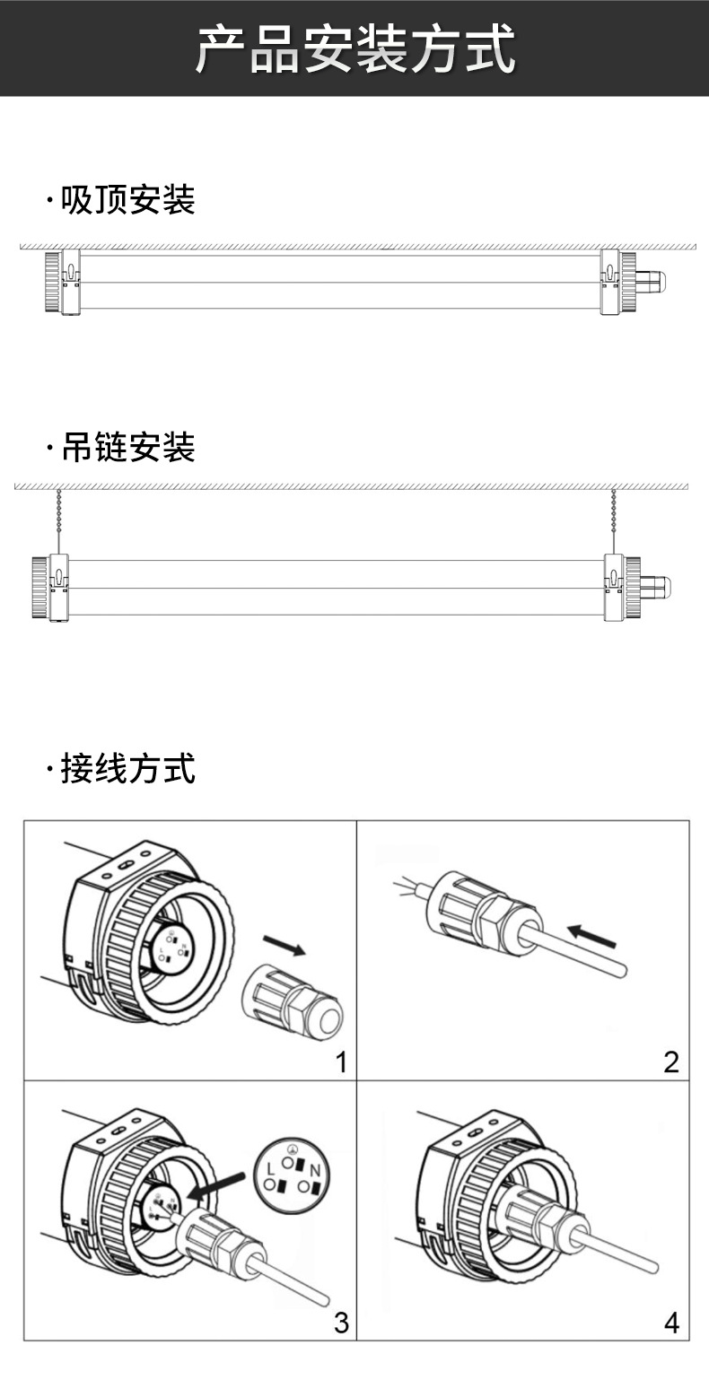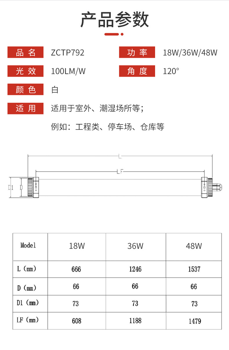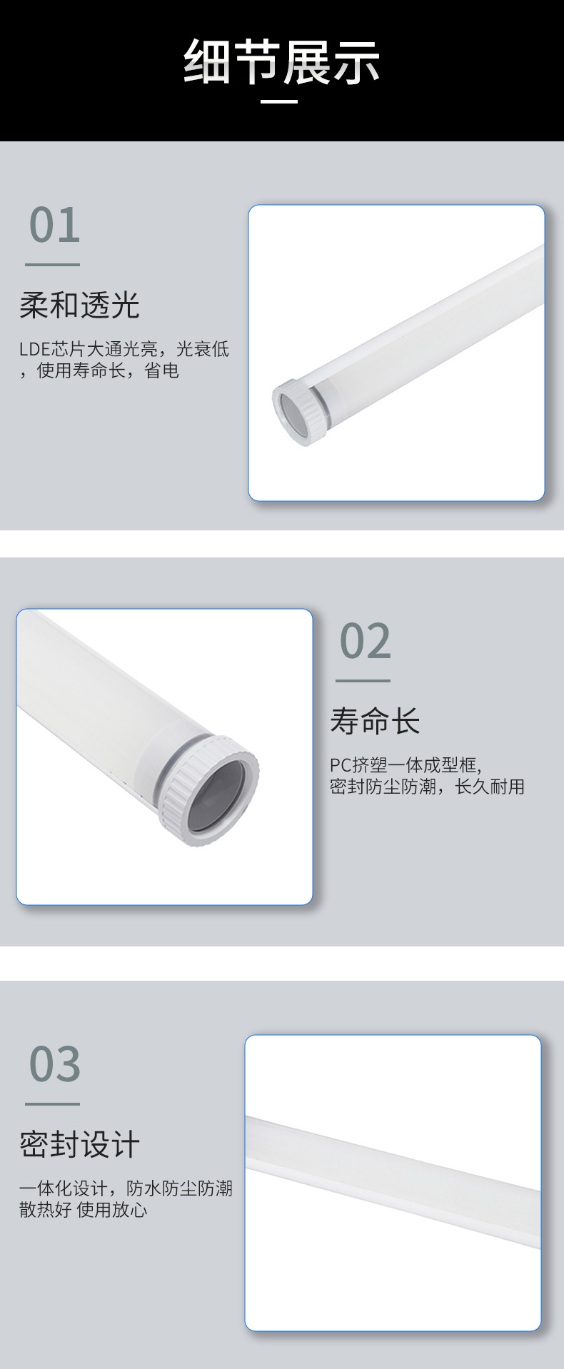 Zhaochang ストリップライト 3 耐性ライト防水ランプ蛍光管天井ストリップ防湿防塵駐車場ライト