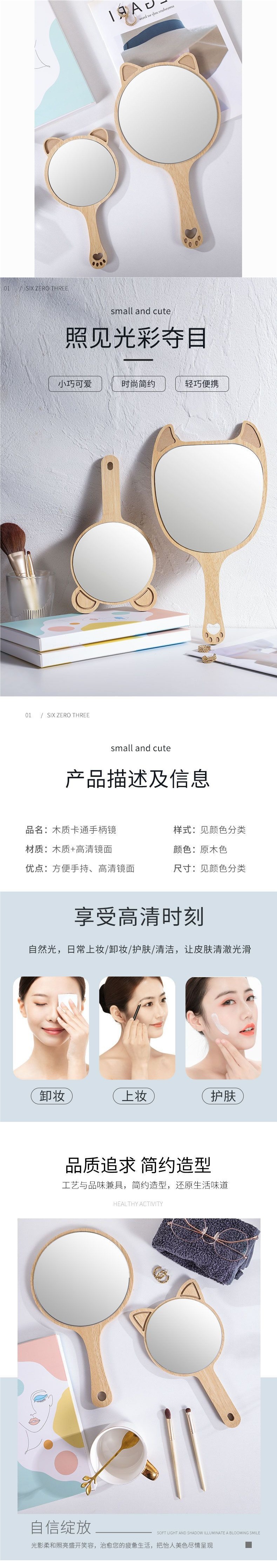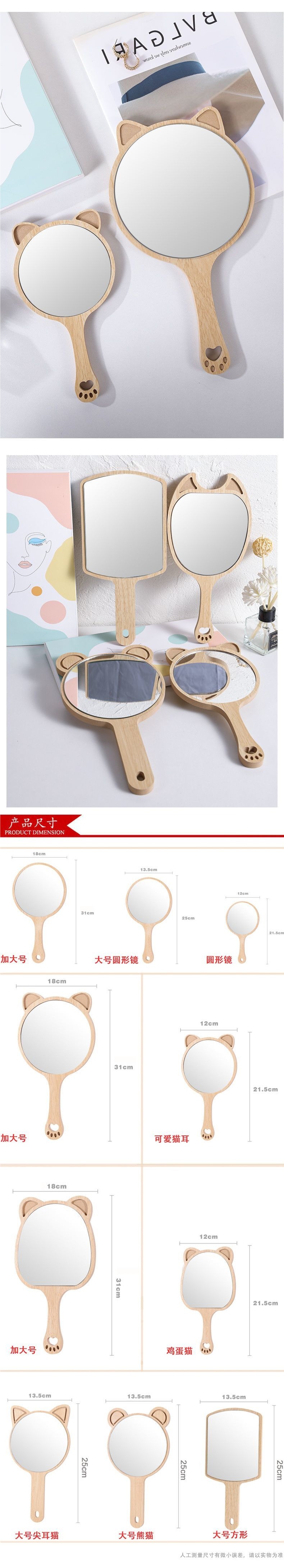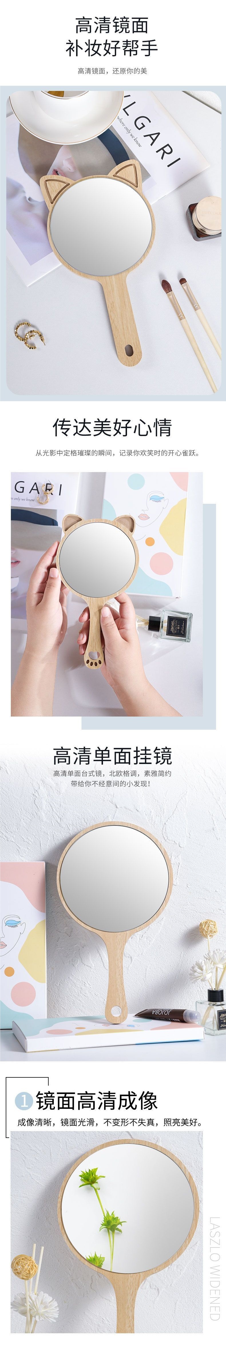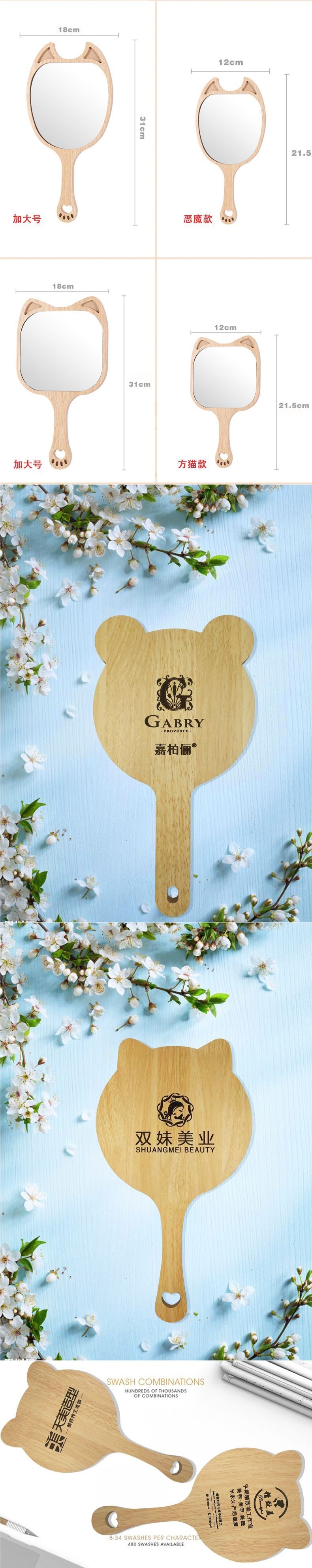 ビューティーミラー 手持ち美容室ネイルハンドヘルドポータブル化粧鏡 木製