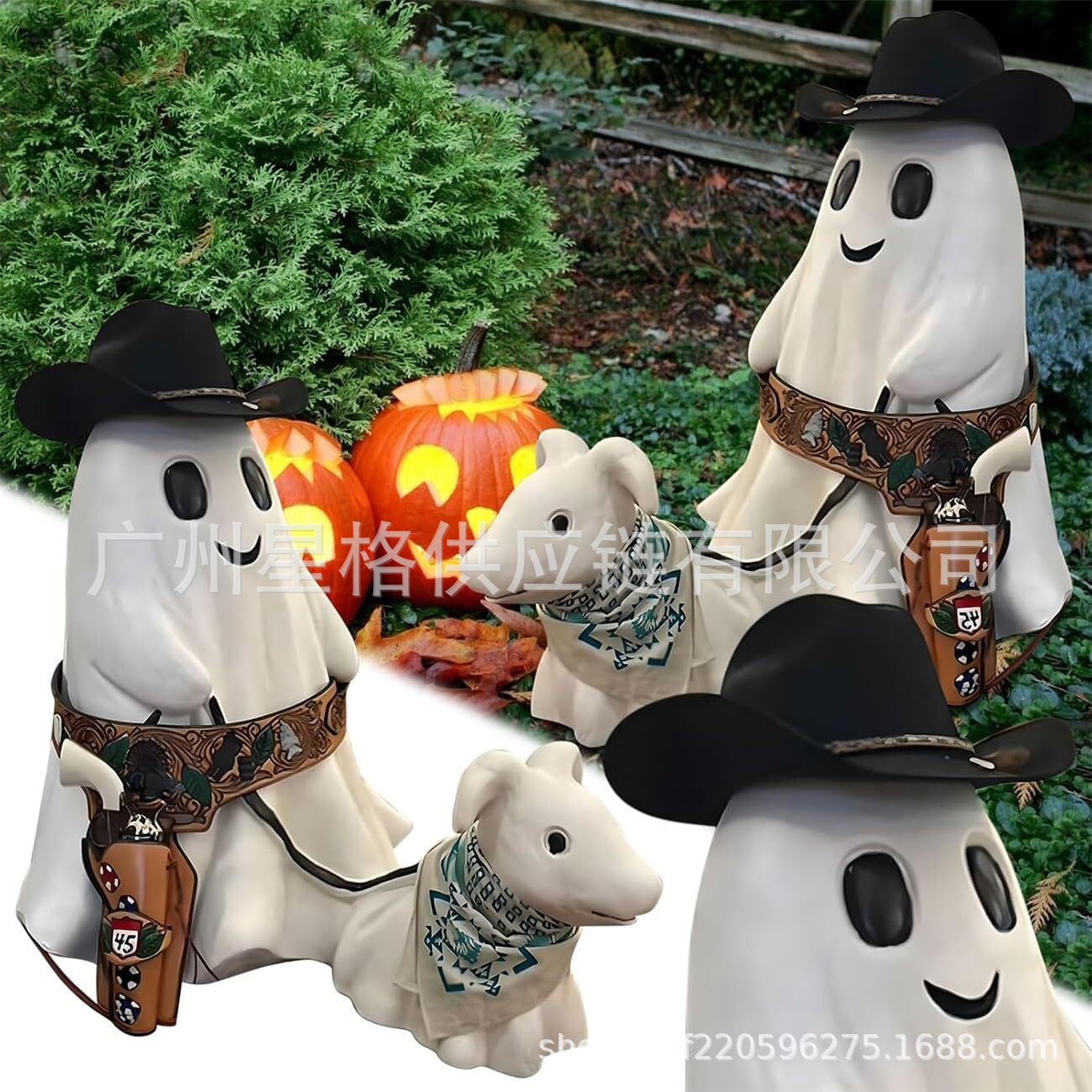 かわいいゴースト像 ハロウィンデコレーション カウボーイゴーストと子羊のオーナメント