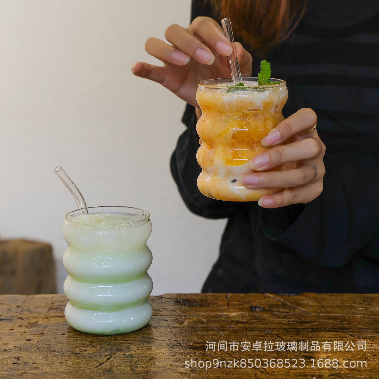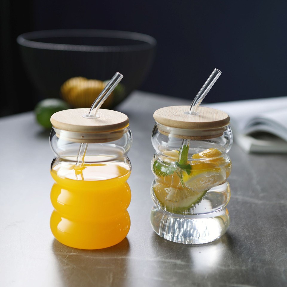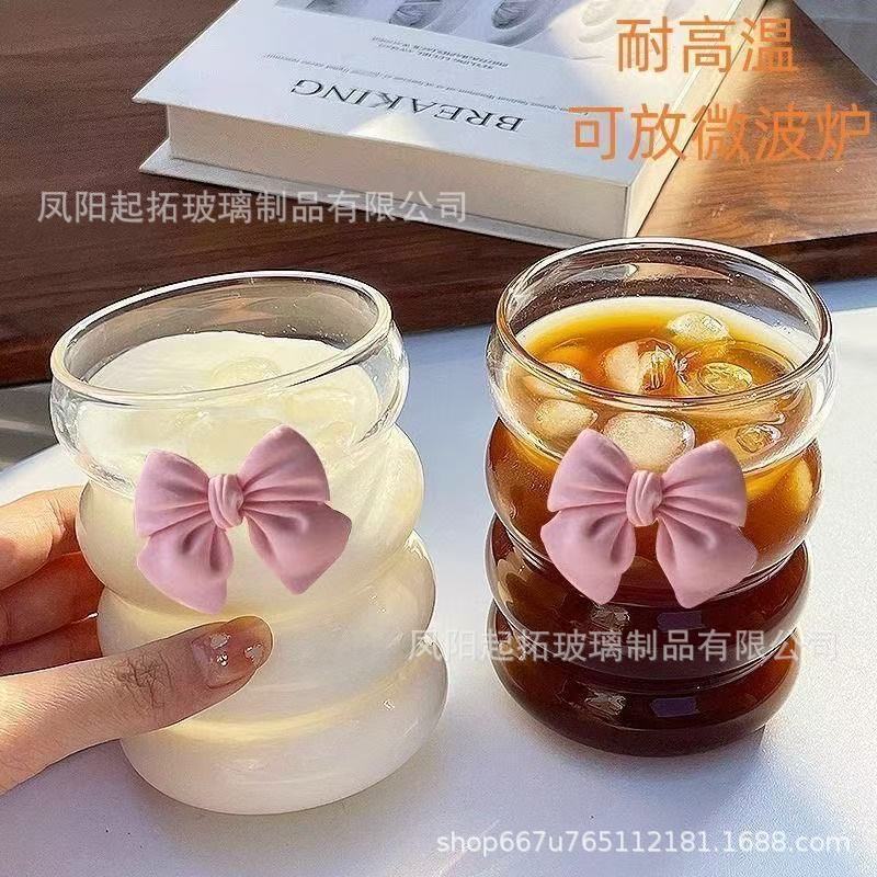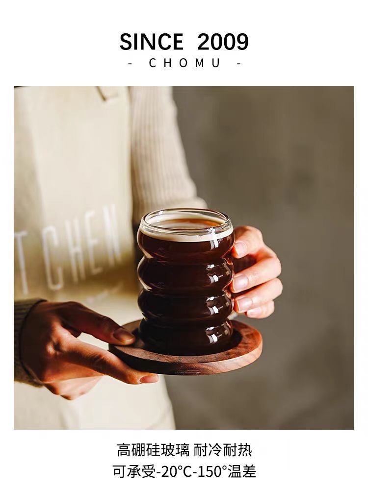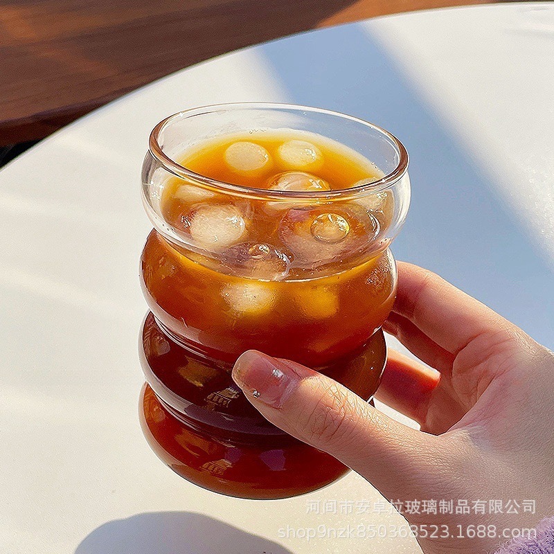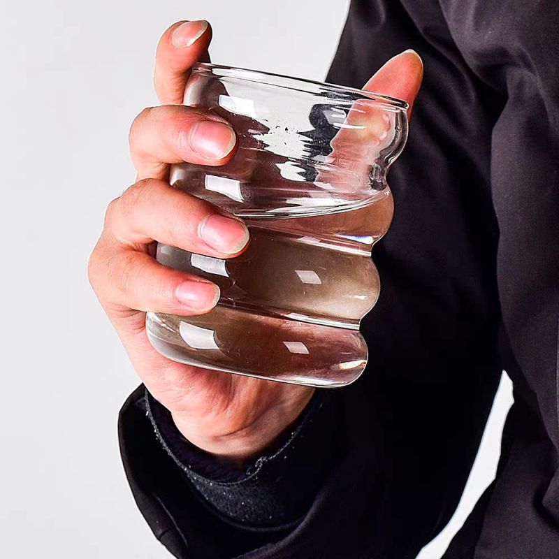 インス風ガラスカップ 高ホウケイ酸キャタピラーカップ シンプルサークルカップ スパイラル波形耐寒耐熱ガラスカップ