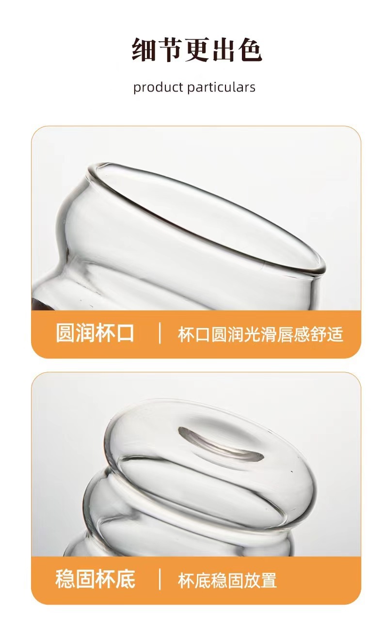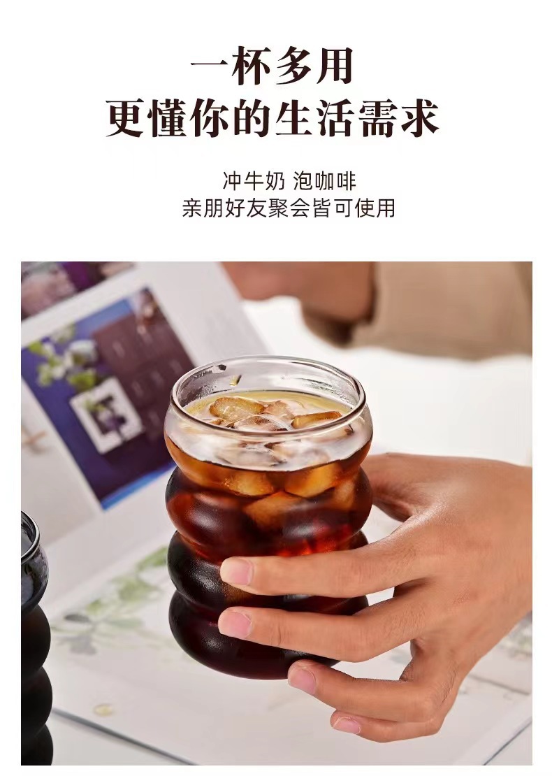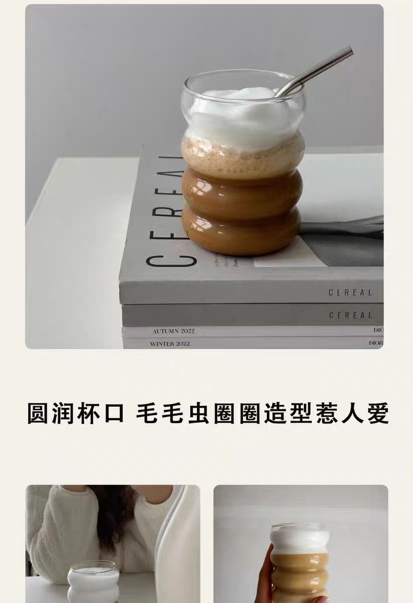可爱毛毛虫圈圈杯简约螺旋高硼硅玻璃杯透明耐高温果汁咖啡牛奶杯