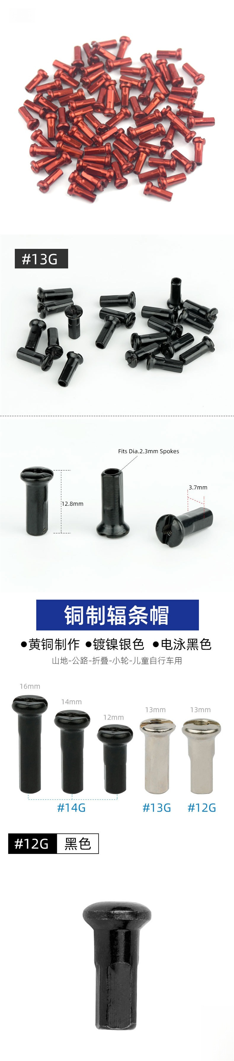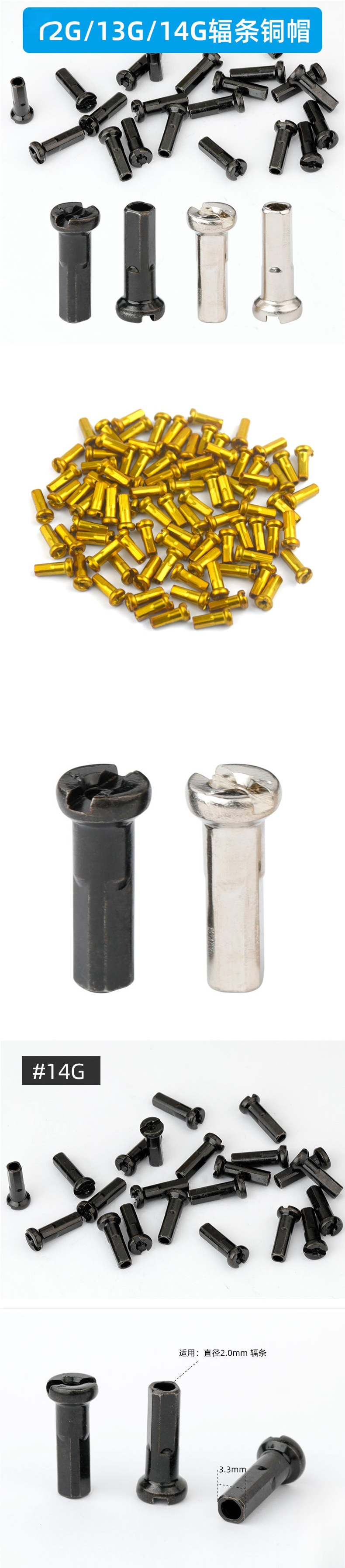 14G自転車スポークキャップ No.14 No.13 銅キャップ No.12/10 電気自動車ナット 炭素鋼キャップ/拡張銅キャップ