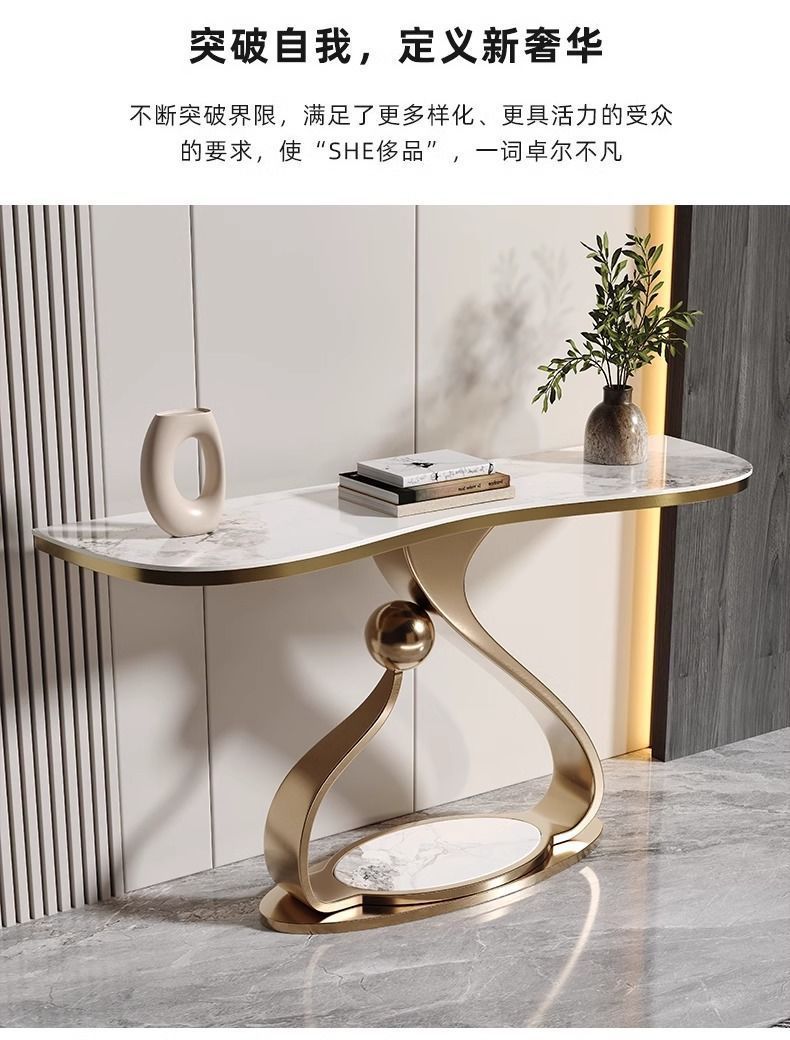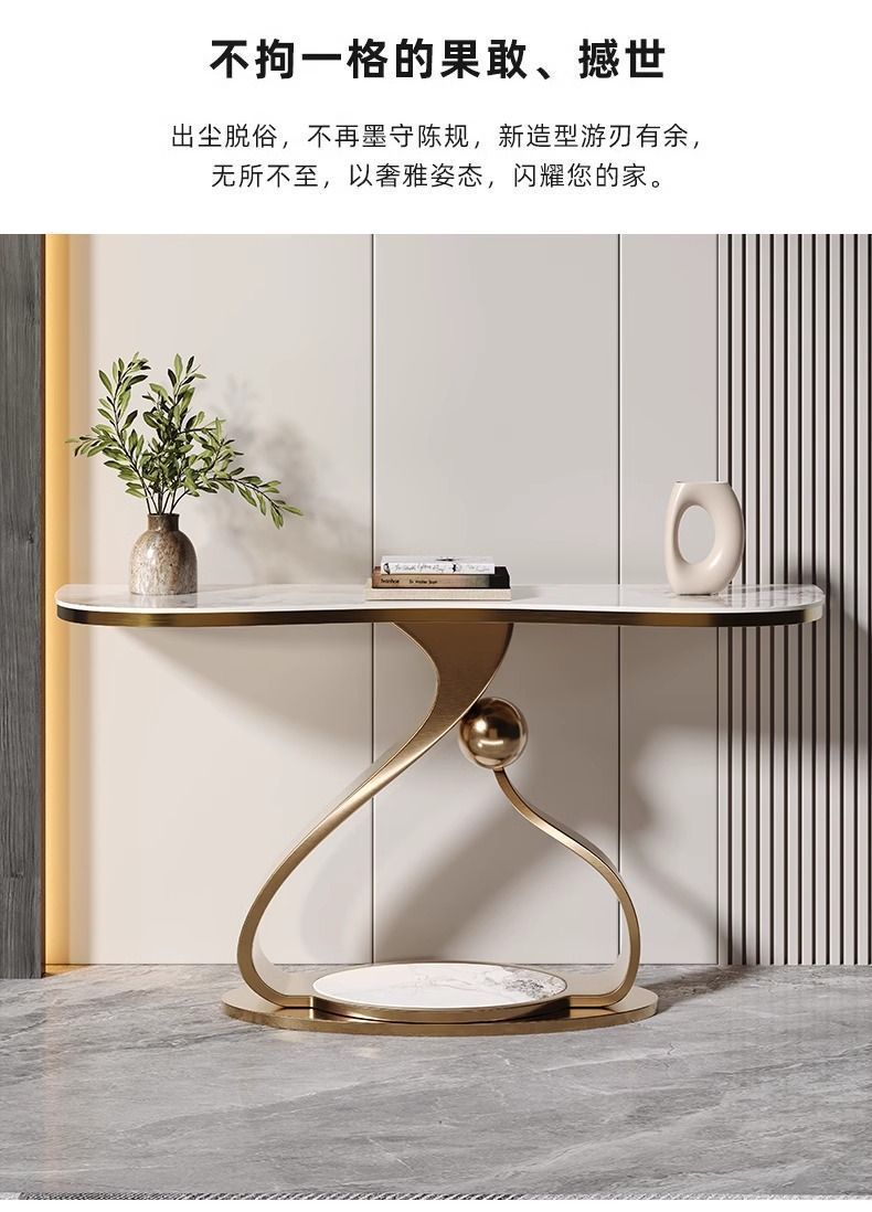 轻奢风不锈钢岩板玄关桌现代艺术玄关台门厅端景台靠墙条案大户型