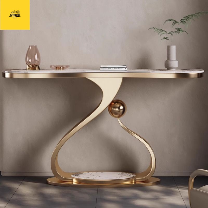 軽豪華風岩板玄関テーブル現代シンプル玄関台壁リビングホテル対門条案着地端景台