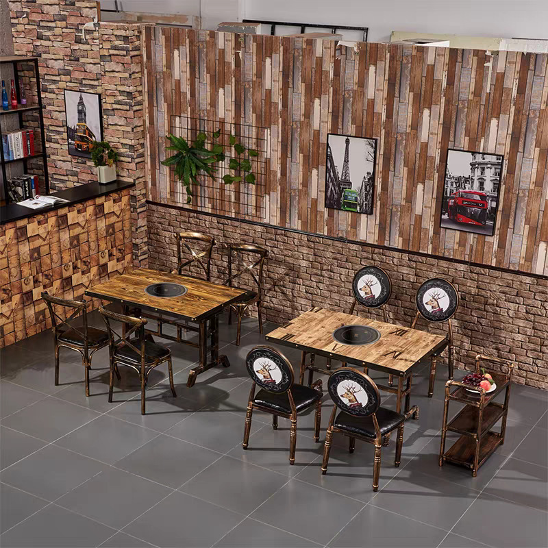 鍋テーブル電磁調理器一体型丸テーブル模造大理石ケータリングレストランテーブルと椅子の組み合わせガスストーブ業務用